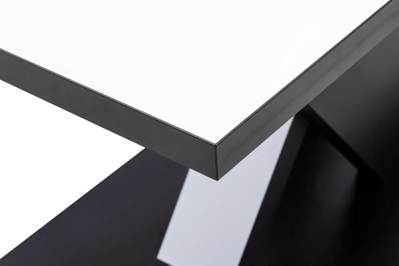 Blat stołu wykonany jest z płyty MDF pokrytej akrylem, stelaż z płyty meblowej pokrytej laminatem, cechującym się zwiększoną trwałością i ułatwiającym dbanie o czystość.