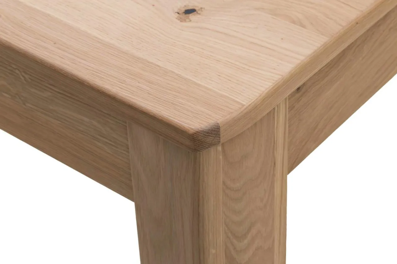 - Stół jest wykonany z płyty wiórowej o grubości 22 mm i wykończony olejowaną okleiną z naturalnego drewna dębowego. Do olejowania drewna użyto naturalnego oleju;