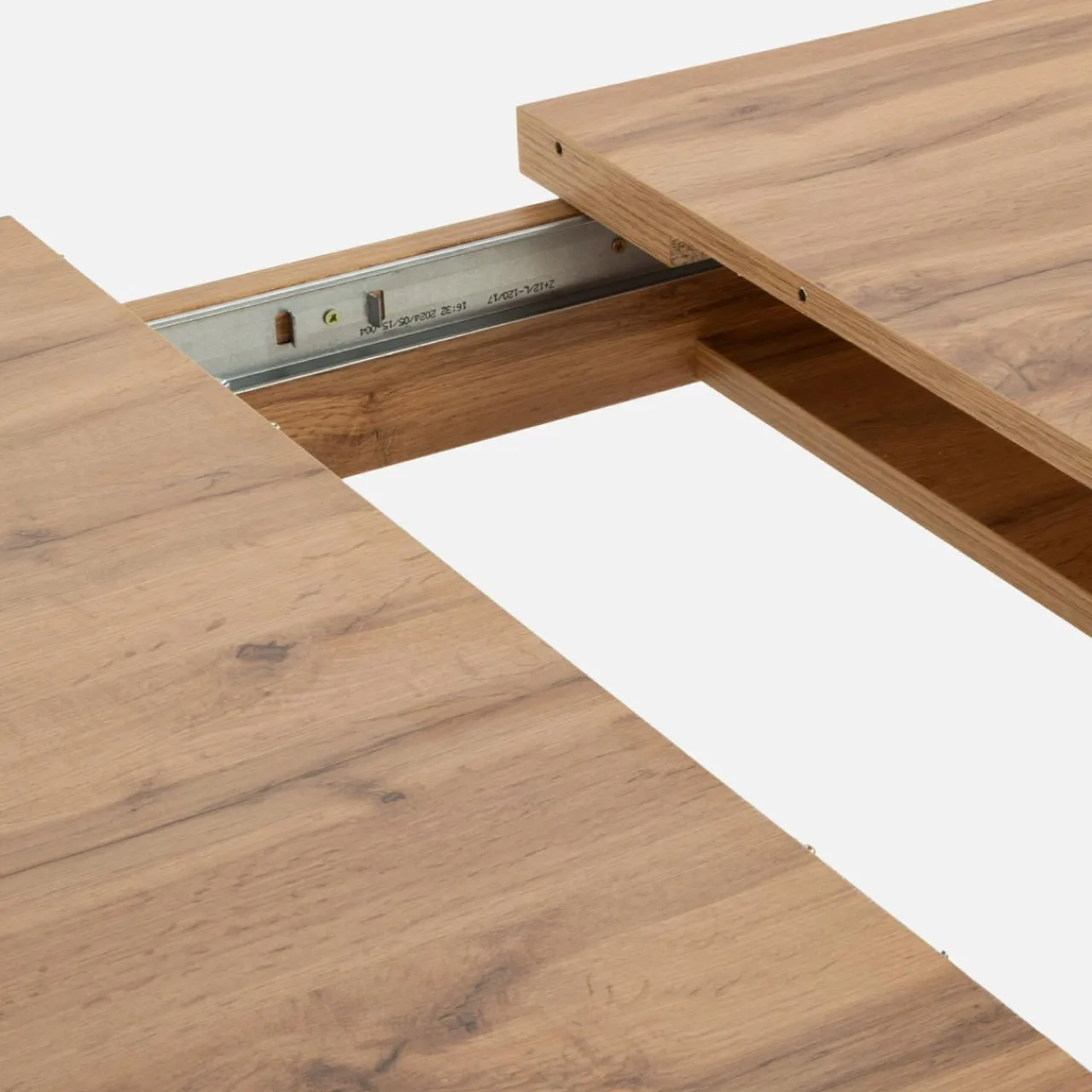 - Długość stołu bez wkładek wynosi 160 cm – świetnie sprawdzi się podczas codziennych obiadów czy gier w gry planszowe.