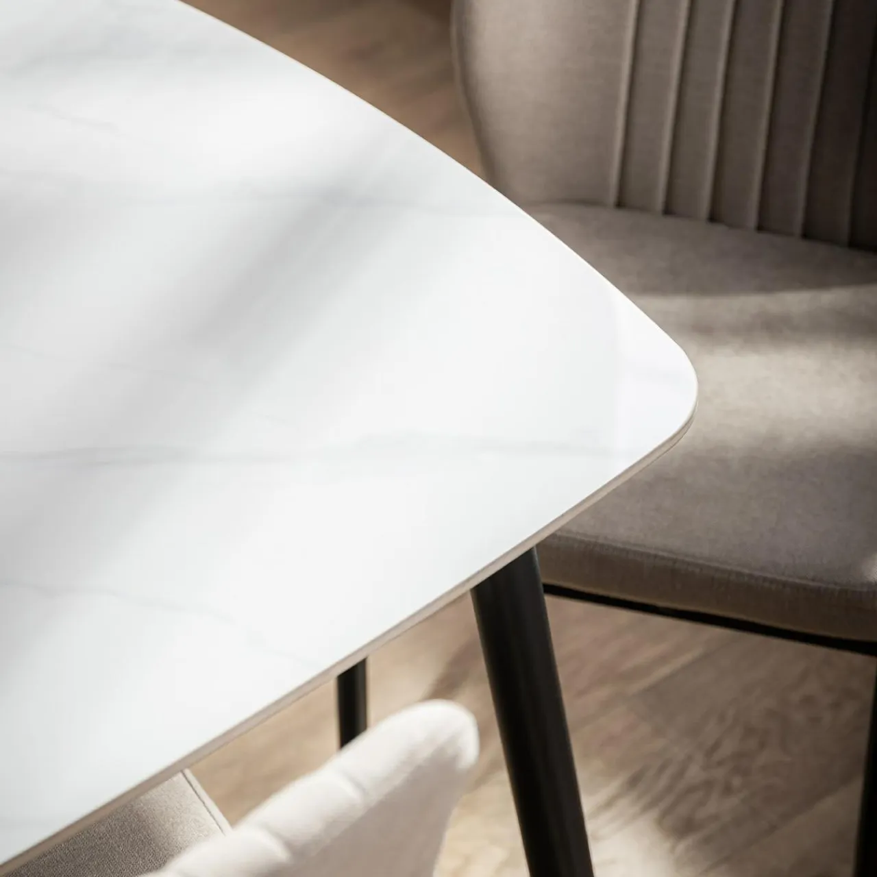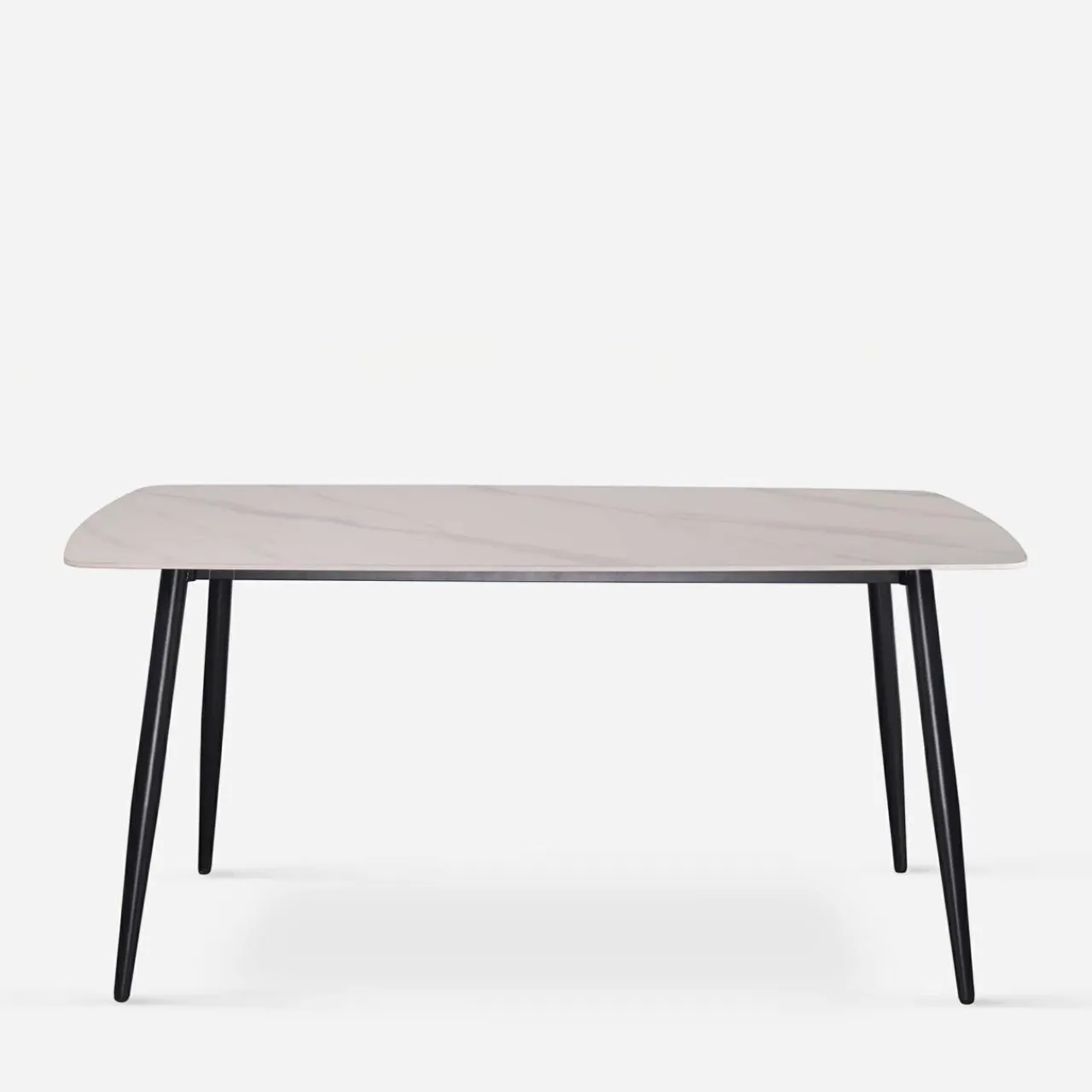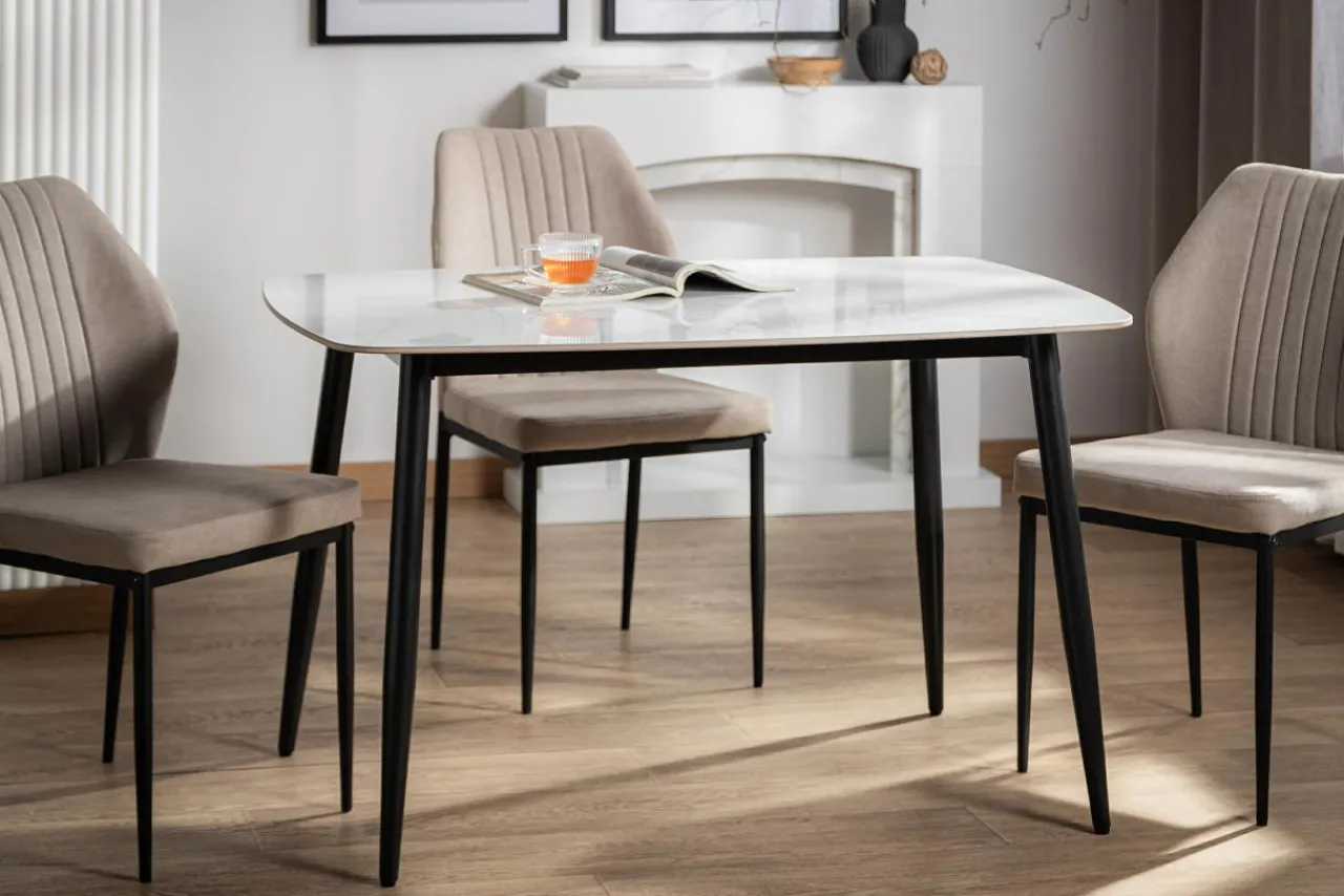 Stół ESKEL posiada blat wykonany z syntetycznego marmuru. Delikatny wzór stanowi sam w sobie dekorację pomieszczenia, bez obrusów i serwet.