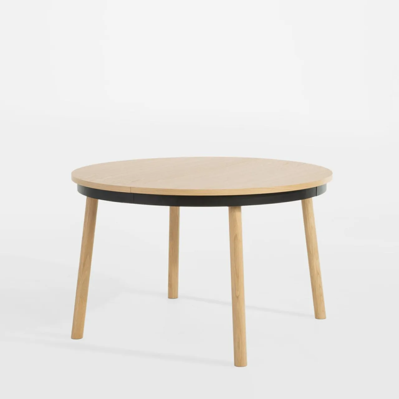 Okrągła forma stołu sprzyja rozmowom przy codziennych posiłkach.