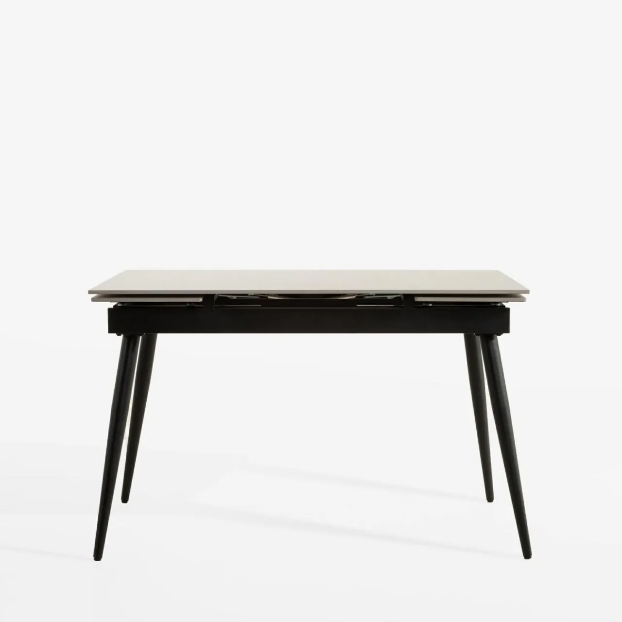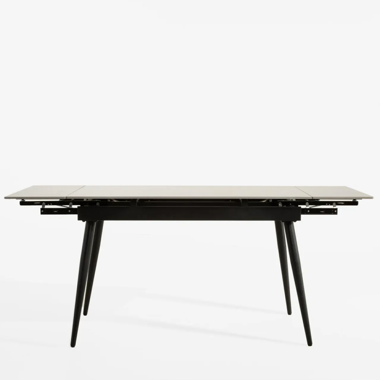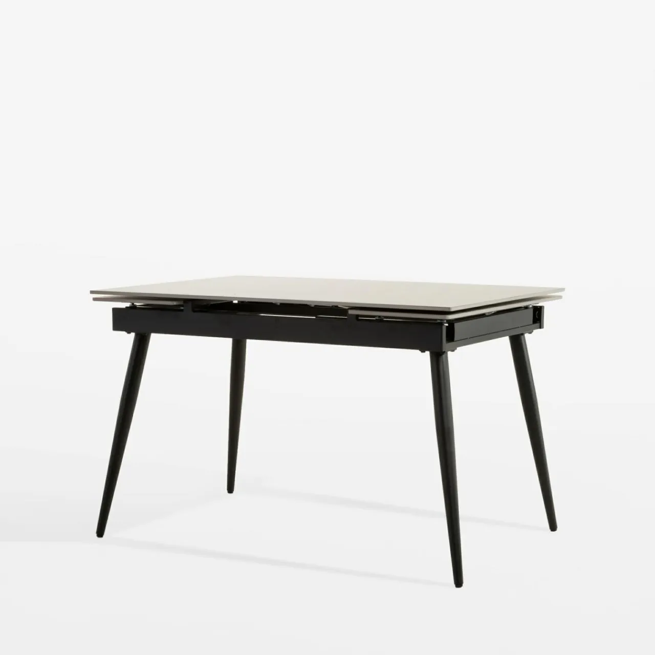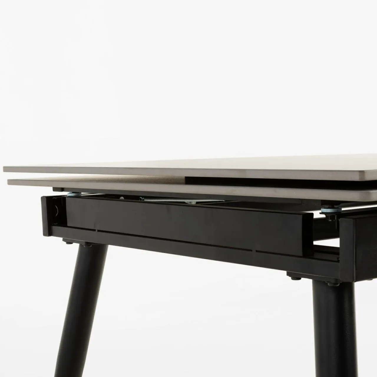 - Stół rozkłada się w prosty sposób – wysuwane przy obu krawędziach blatu wkładki wystarczy lekko pociągnąć ku górze i gotowe.