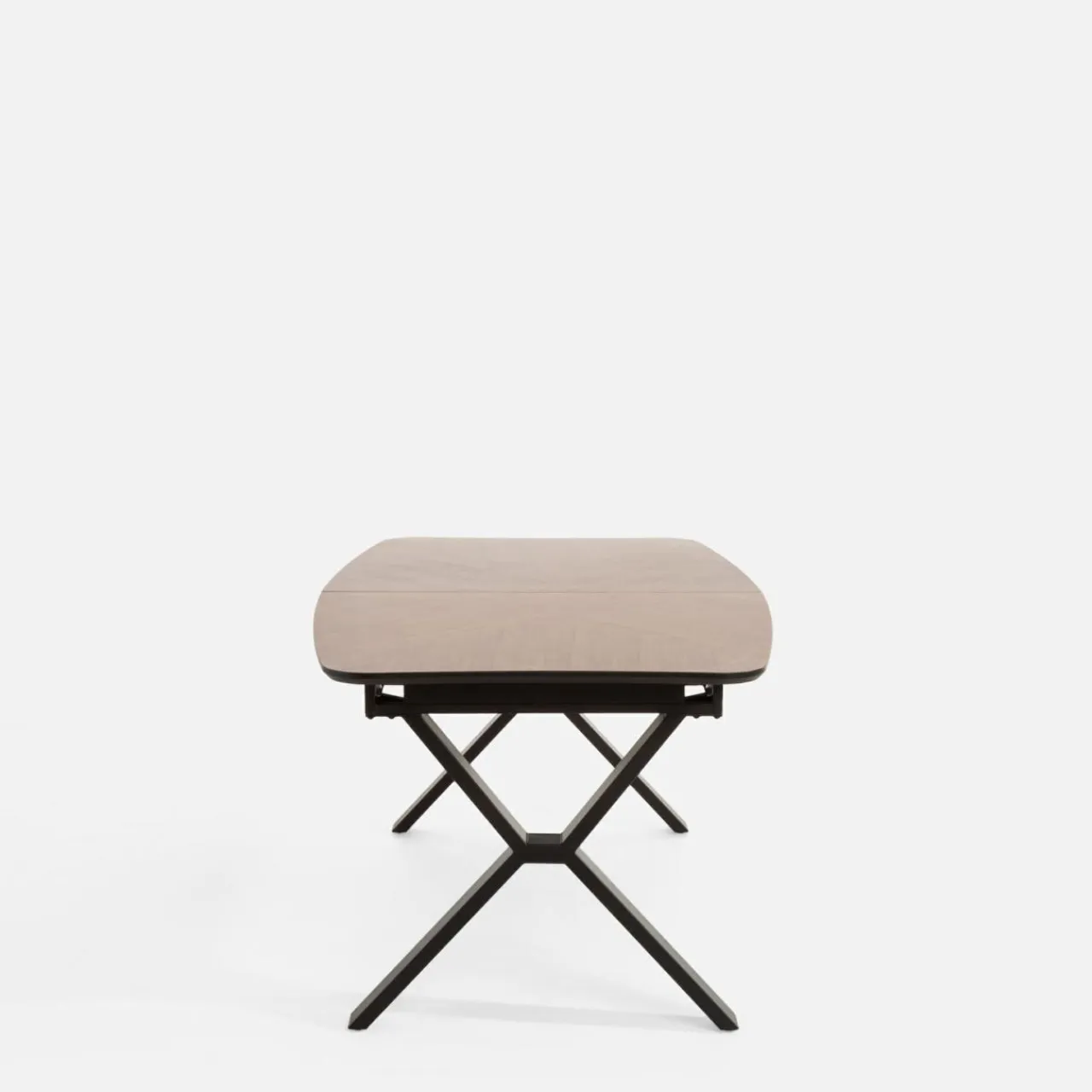 - Wkładka znajduje się pod blatem. Dzięki systemowi rozkładania typu „motyl”, bardzo łatwo złożysz i rozłożysz stół.