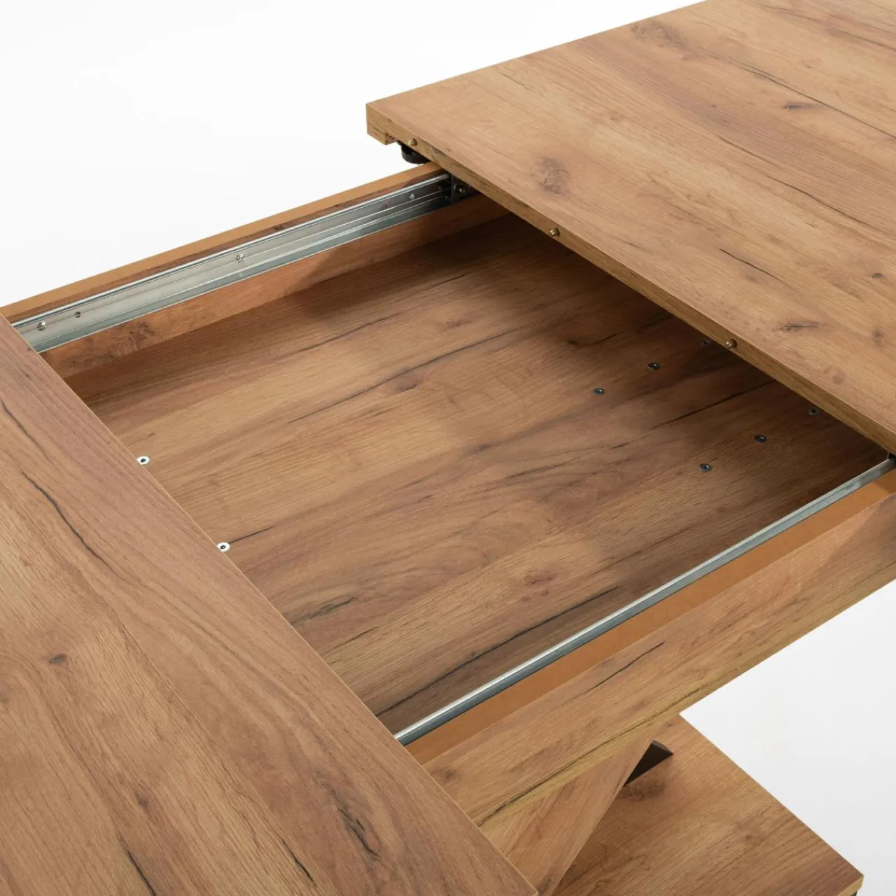 - Wkładka do przedłużenia blatu jest ukryta wewnątrz stołu, dlatego nie musisz się martwić o dodatkowe miejsce do jej przechowywania.