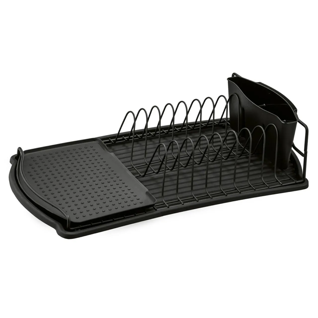 Suszarki I Ociekacze| Suszarka do naczyń czarna z ociekaczem i tacą 47.5×26.5×11 cm