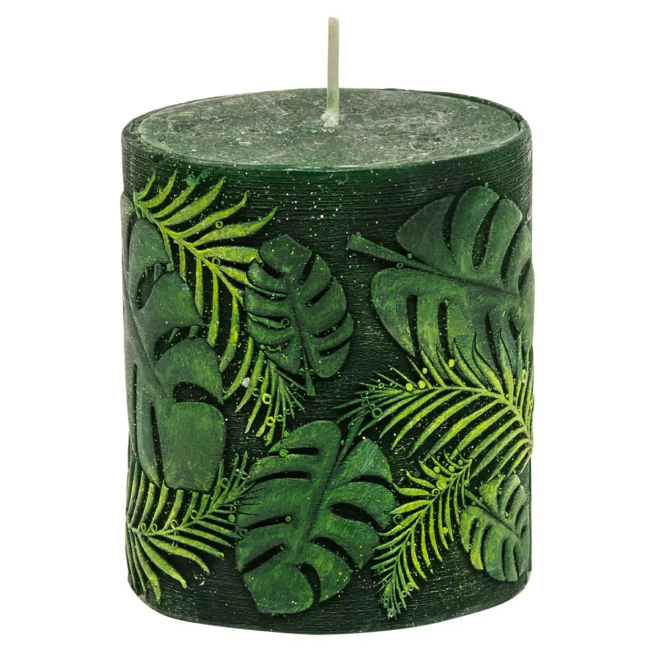 Oryginalna świeca z kolekcji KONGO, zdobiona motywem liści palmowych kojarzących się z egzotycznymi tropikami, doskonale wpisuje się w aktualne trendy dekoratorskie. Niewątpliwie potrafi mile zaskoczyć swym subtelnym światłem, roztaczającym się w domowym wnętrzu, nadając mu ciekawy charakter i podkreślając jego indywidualność. To jedna z wielu naszych propozycji pięknych i nastrojowych dekoracji, które pobudzają zmysły oraz tworzą niepowtarzalny nastrój. Stanowi idealny dodatek do prezentu. Czas palenia 36 godzin.