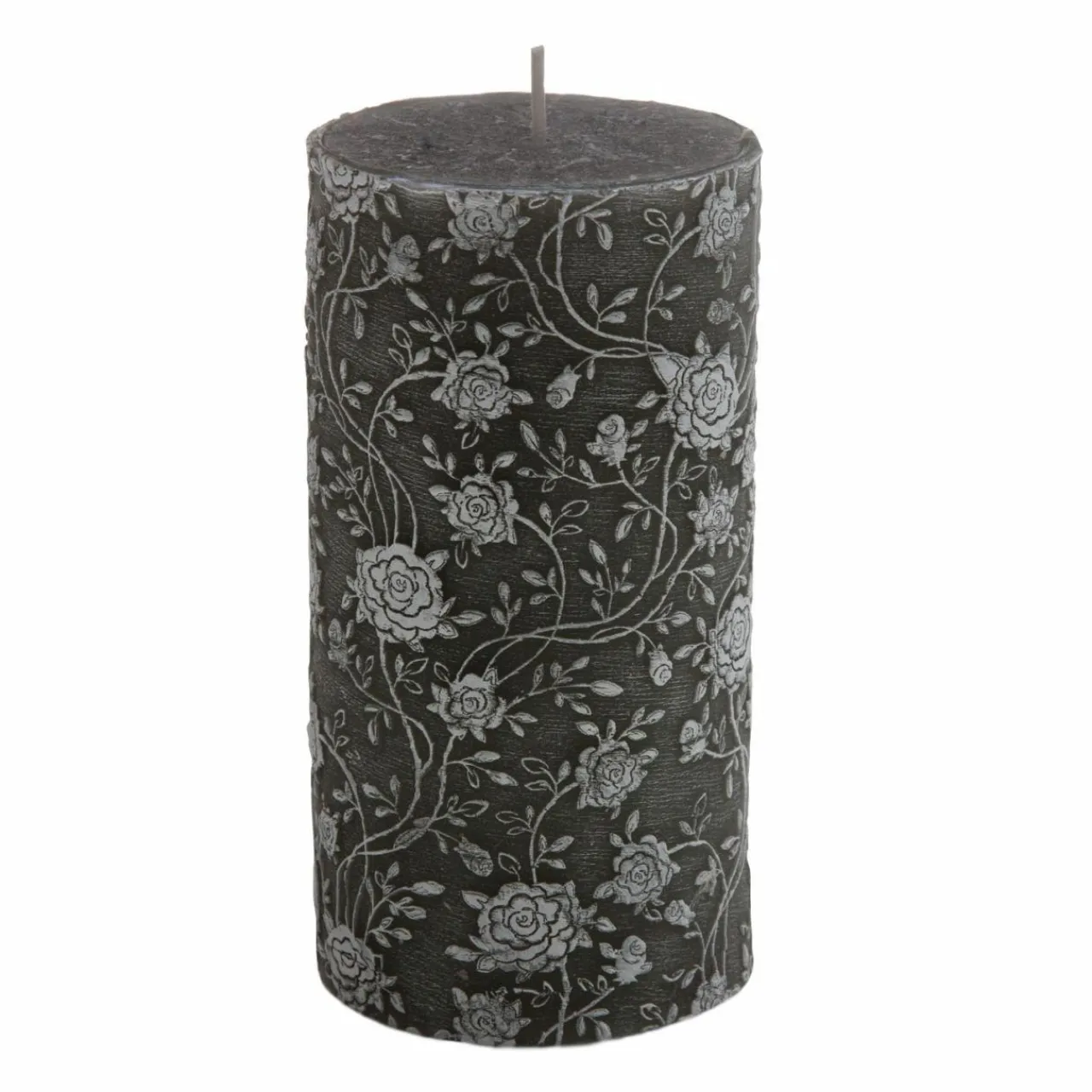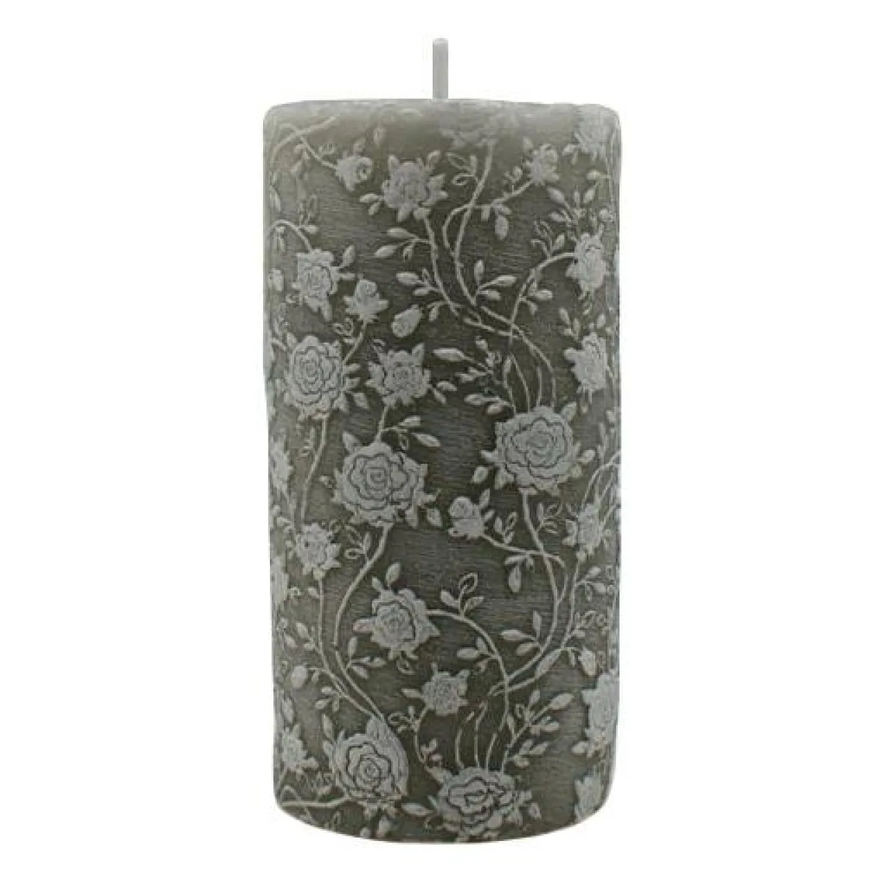 ŚWIECA RÓŻYCZKA WALEC SZARY 6,5/14 CM
