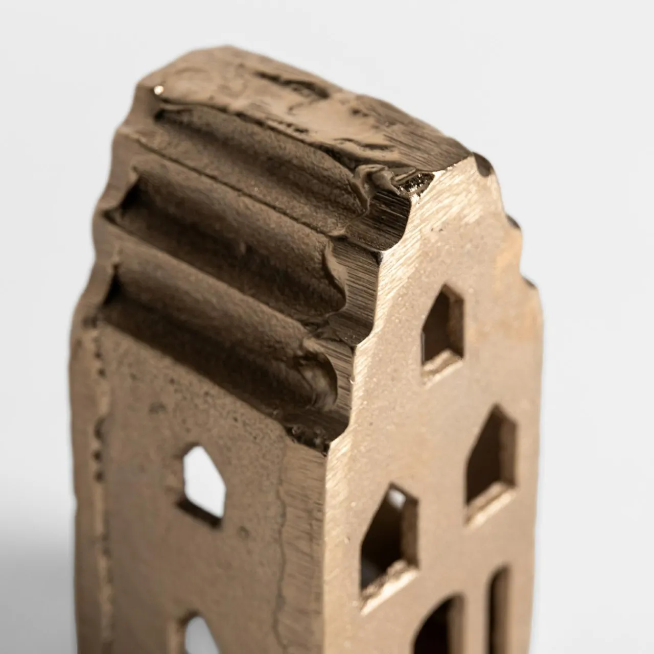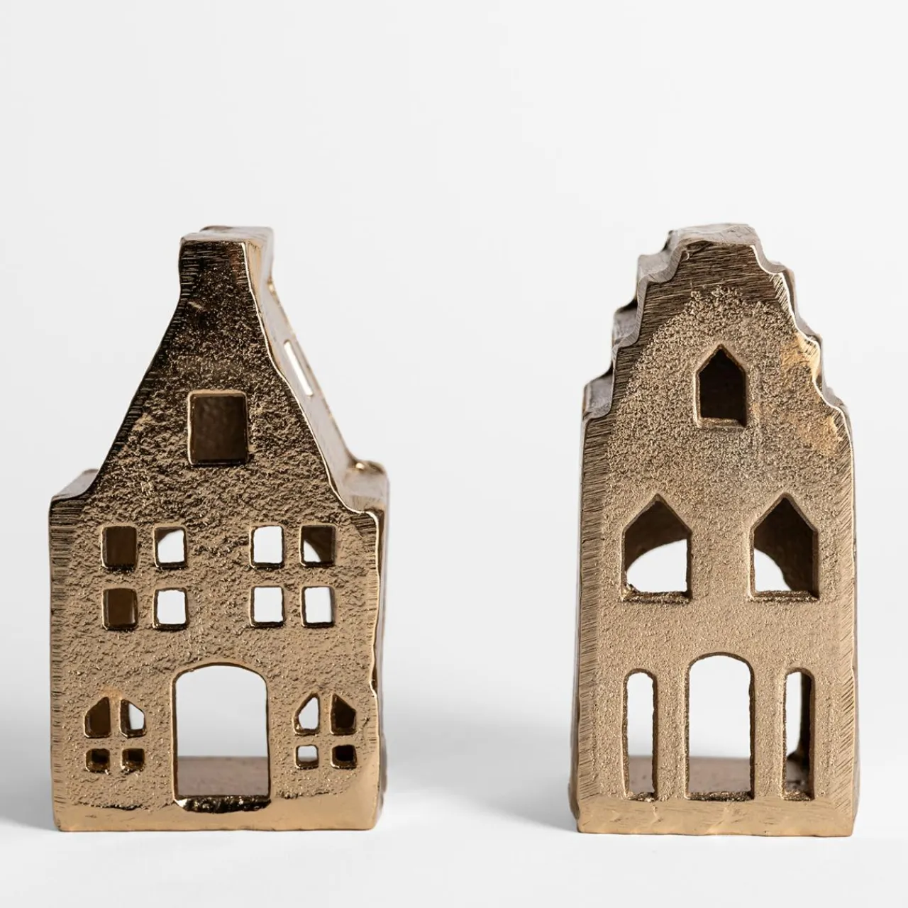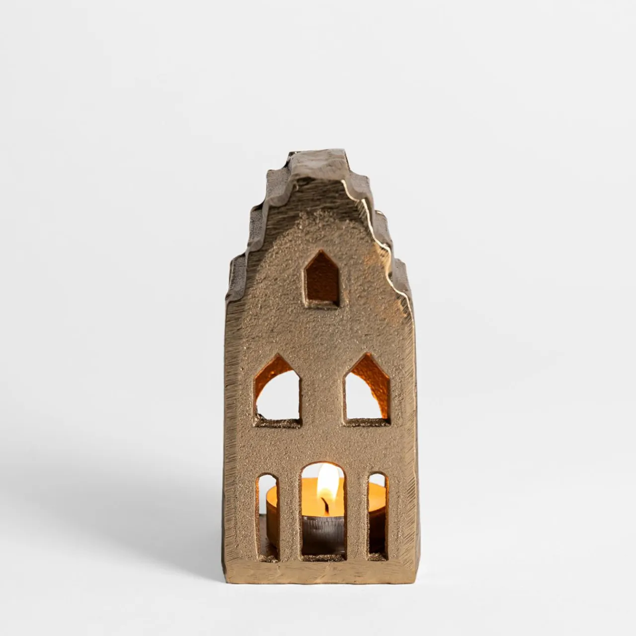 Stwórz ciepłą i przytulną atmosferę w swoim domu dzięki złotej latarence w kształcie domku. Wykonana z metalu i pokryta eleganckim złotym wykończeniem, ta latarenka to idealny dodatek, który doda blasku każdej przestrzeni.