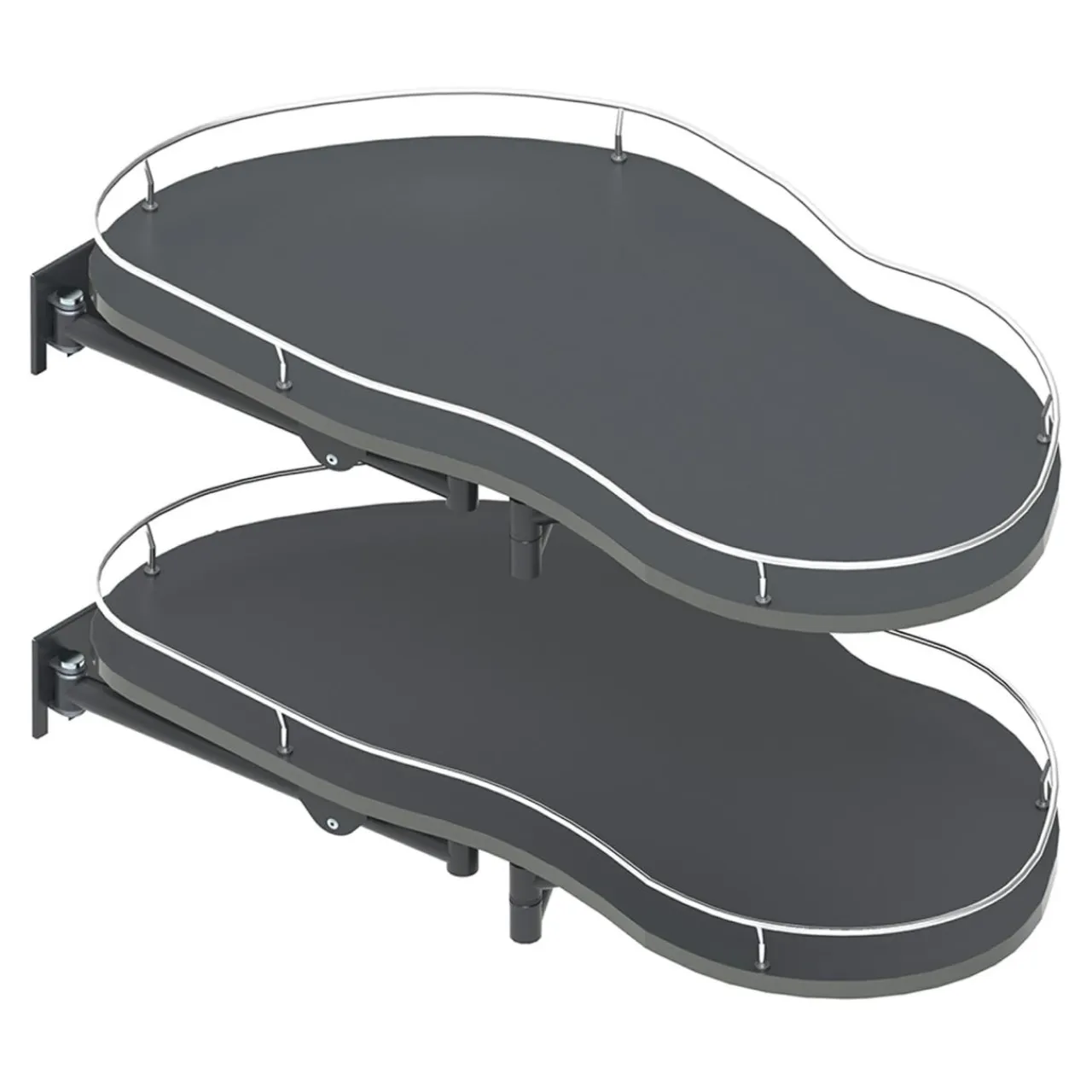 Podstawy obu półek zostały wykonane w grafitowym kolorze z wykończoną chromem galeryjką, która zapobiega wypadnięciu umiejscowionej na nich zawartości. Maksymalny udźwig pojedynczej półki wynosi 15 kg. Wbudowany mechanizm umozliwia płynny ruch i miękki dociąg każdej z półek.