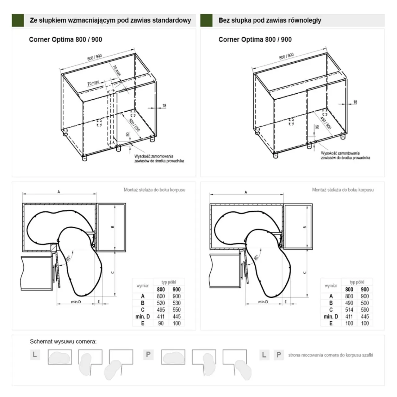 Ten model półek cargo został przeznaczony do szafek narożnych o szerokości 80 cm.