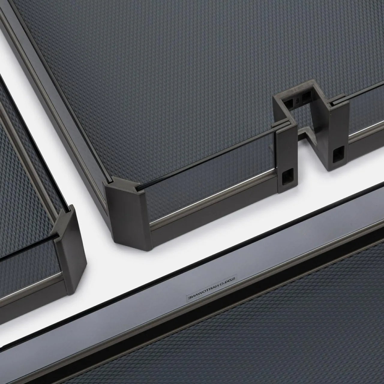 - Podstawa koszy została wykończona ciemnoszarym kolorem, natomiast brzegi i ścianki są z hartowanego szkła – razem dają połączenie, które dopasujesz do wnętrza nowoczesnej kuchni.