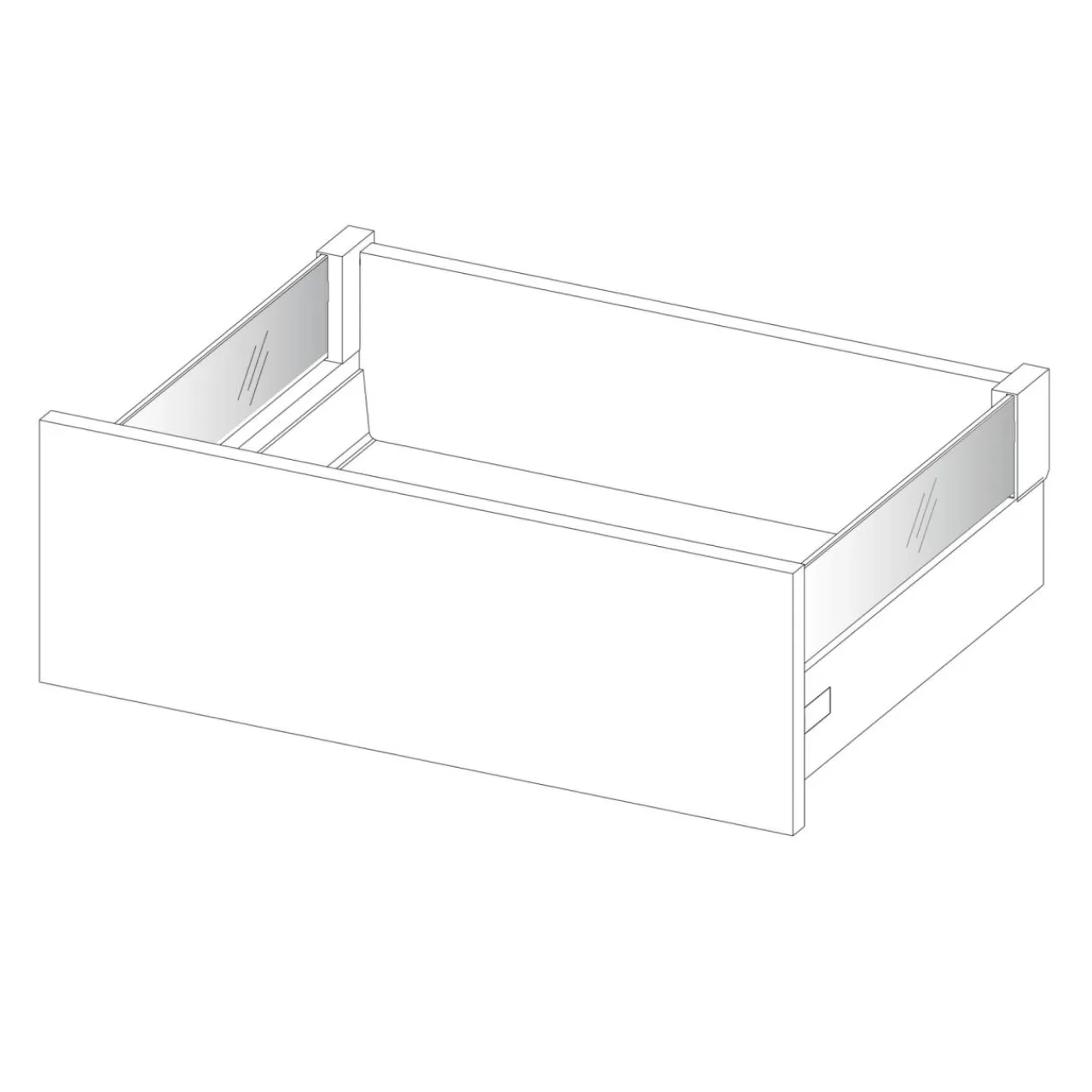 - Szuflada INSIDE SYSTEM MINI BOX nie zawiera prowadnic. Dobierz samodzielnie prowadnice, zależnie od sposobu otwierania szuflady. Klasycznie otwierane lub na system push to open.