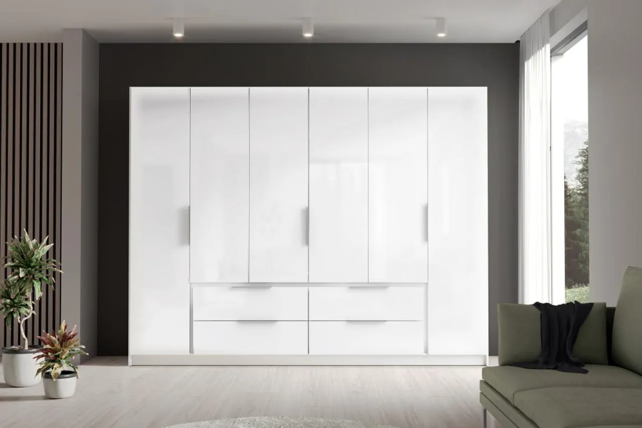 Szafa duża biała z połyskiem LUANO + elementy dodatkowe