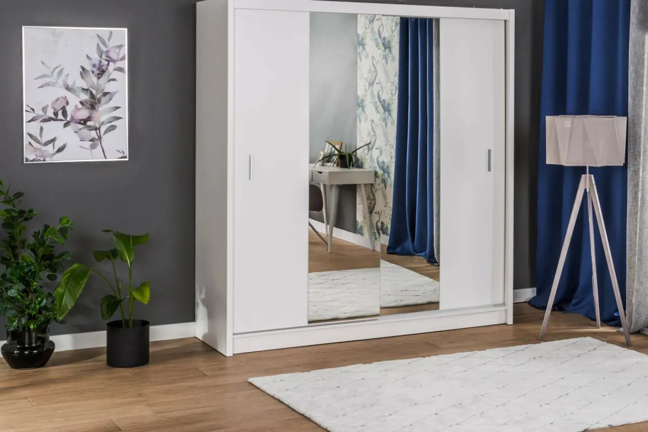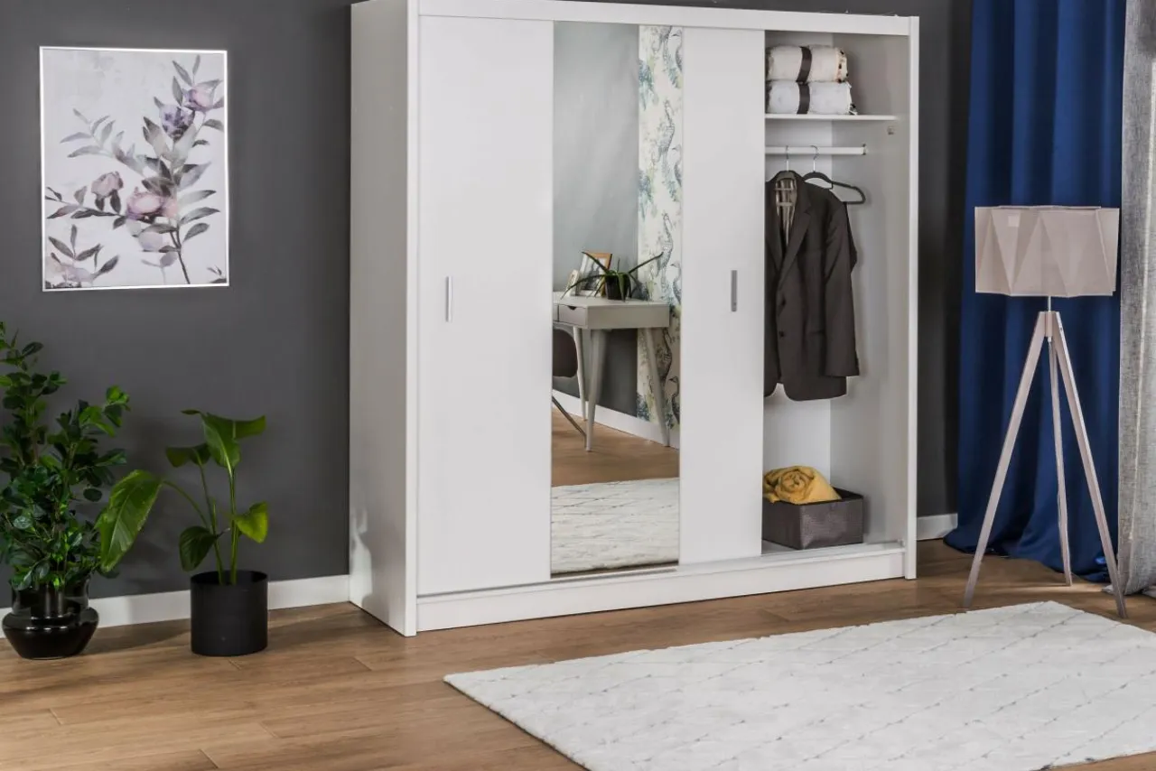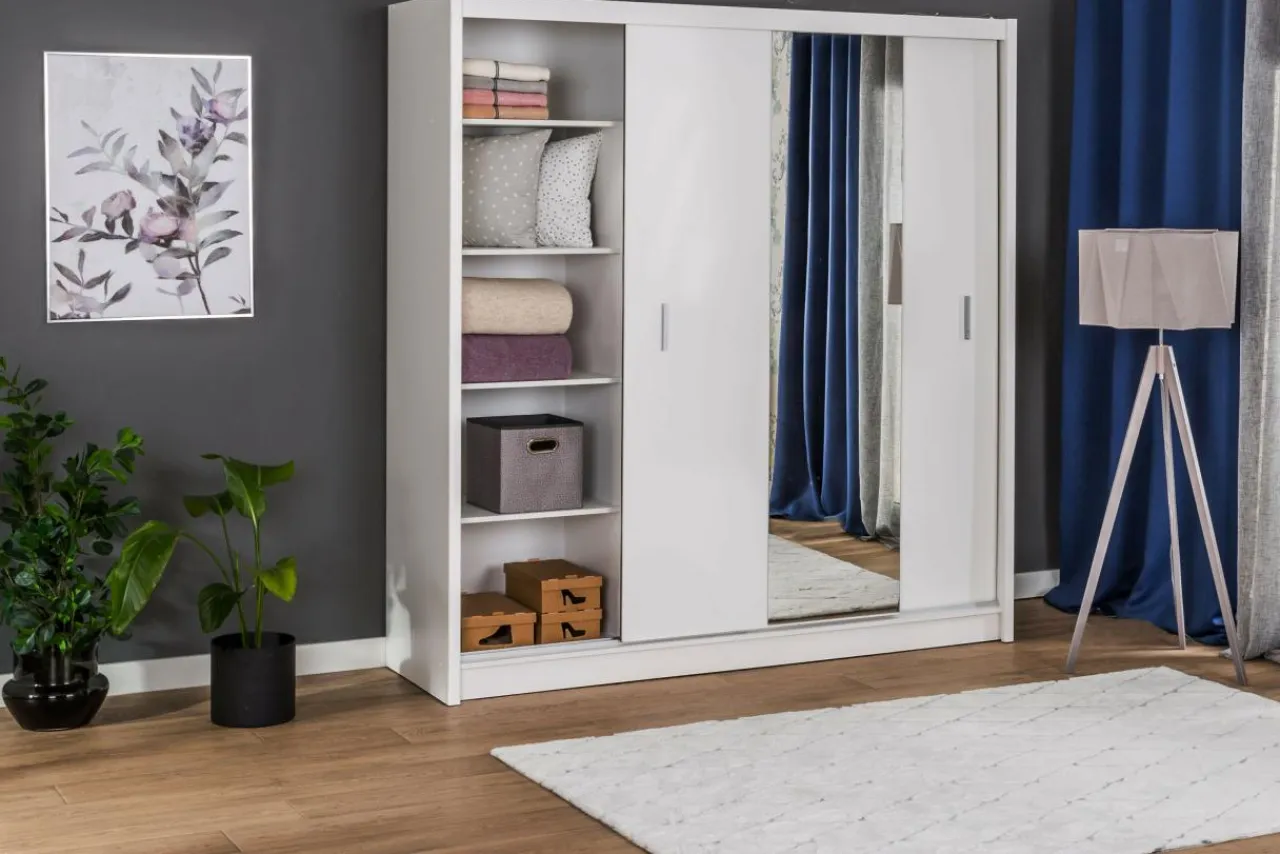 Przestrzenna i praktyczna szafa w klasycznej bieli świetnie sprawdza się w sypialni, garderobie lub przedpokoju, nie dominując przestrzeni.