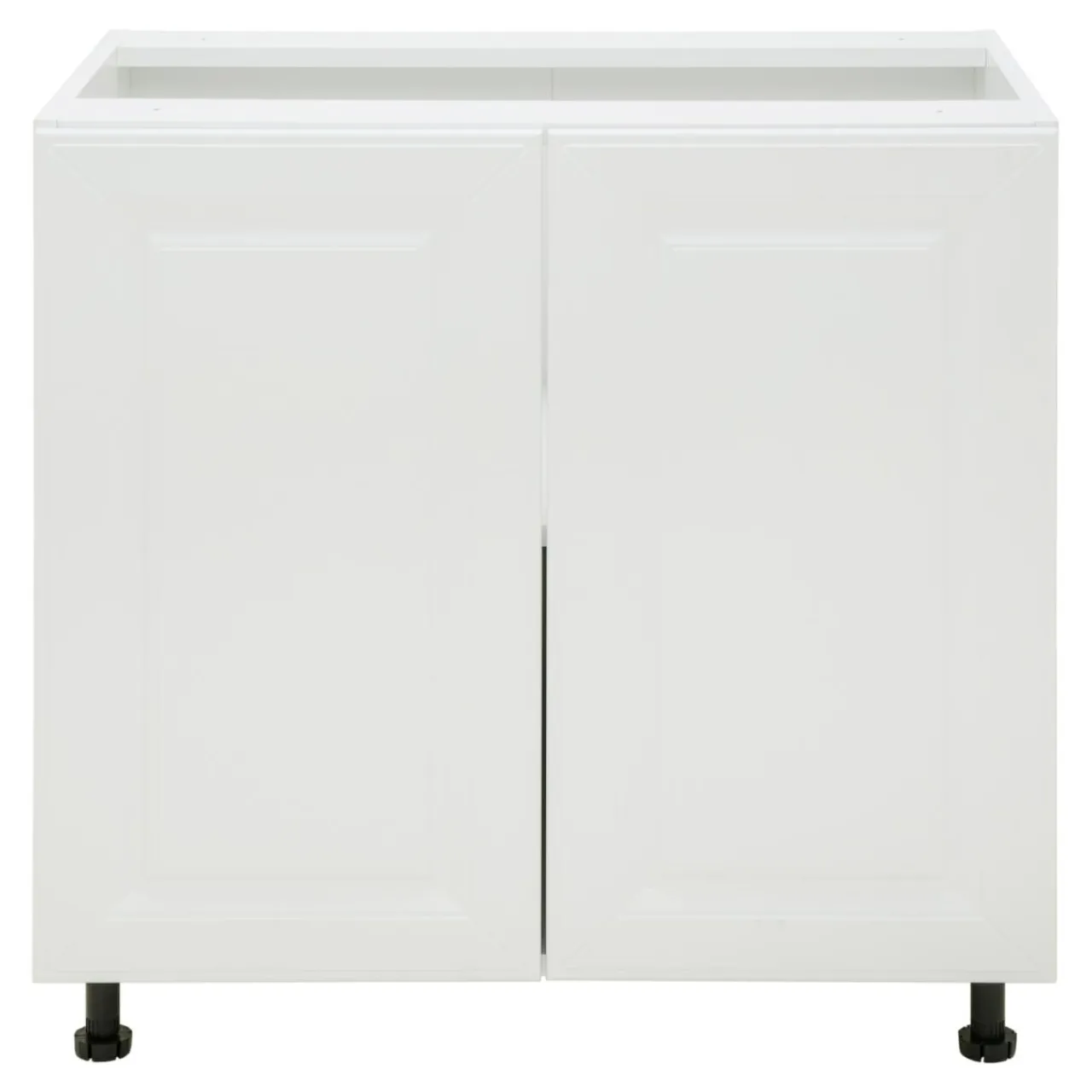 Front zamykanej szafki BASIC PLUS BP/D80 został wykończony w matowym odcieniu bieli. Uwagę zwraca charakterystyczna ramka, wewnątrz której umieszczone zostało zdobienie.