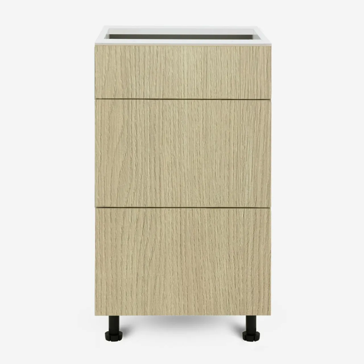 - Szafka podzielona jest na 3 szuflady – pozwala na oddzielenie drobnych sztućców i akcesoriów od garnków.