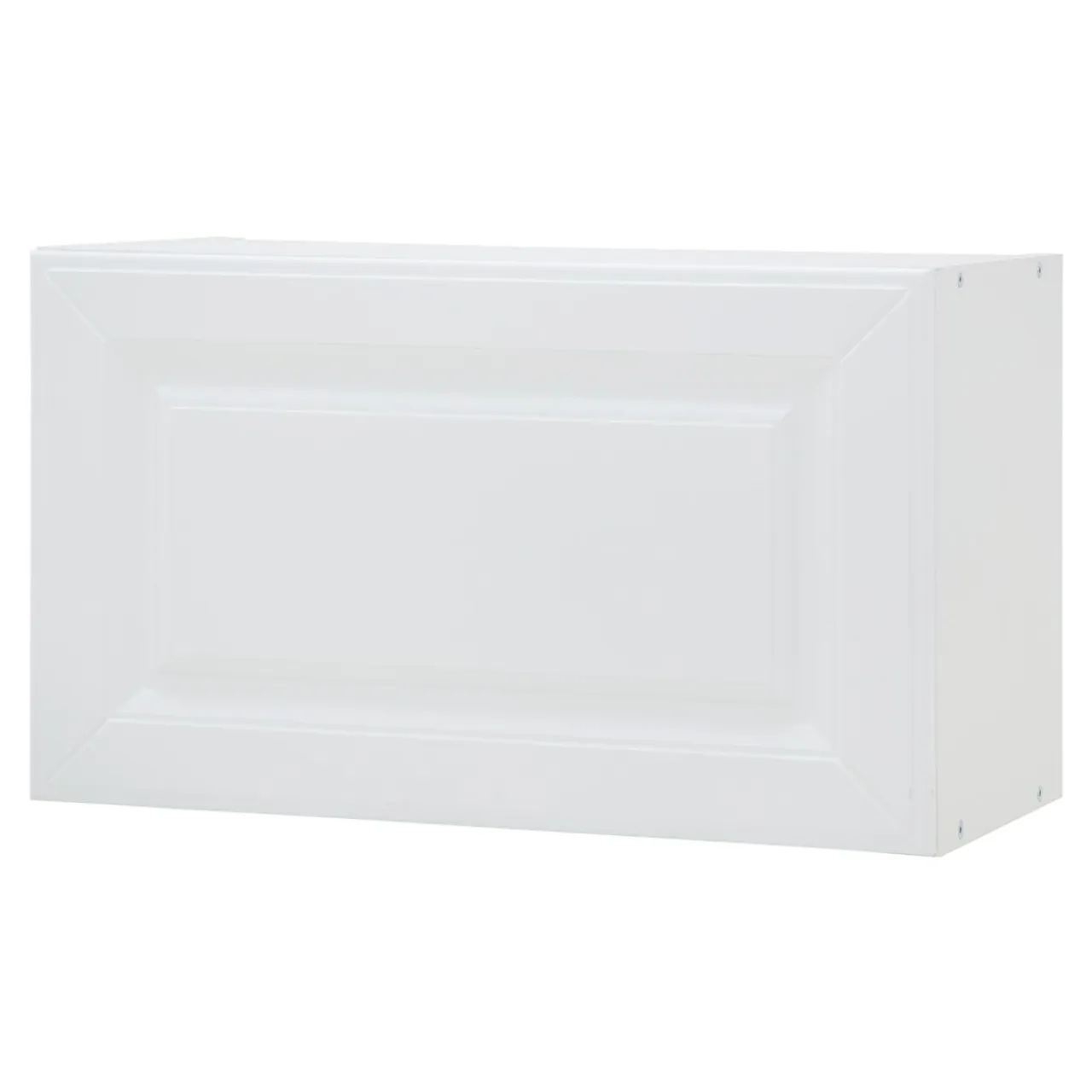 Front szafki został wykończony w matowym odcieniu bieli. Uwagę zwraca charakterystyczna ramka, wewnątrz której umieszczone zostało zdobienie. Drzwi otwierają się do góry, dzięki gazowym siłownikom. Wnętrze idealne nadaje się dla niewielkich naczyń oraz produktów żywnościowych i przypraw, które dobrze mieć w zasięgu ręki podczas przyrządzania posiłków. Przy podstawie szafki znajduje się panel z oświetleniem LED.