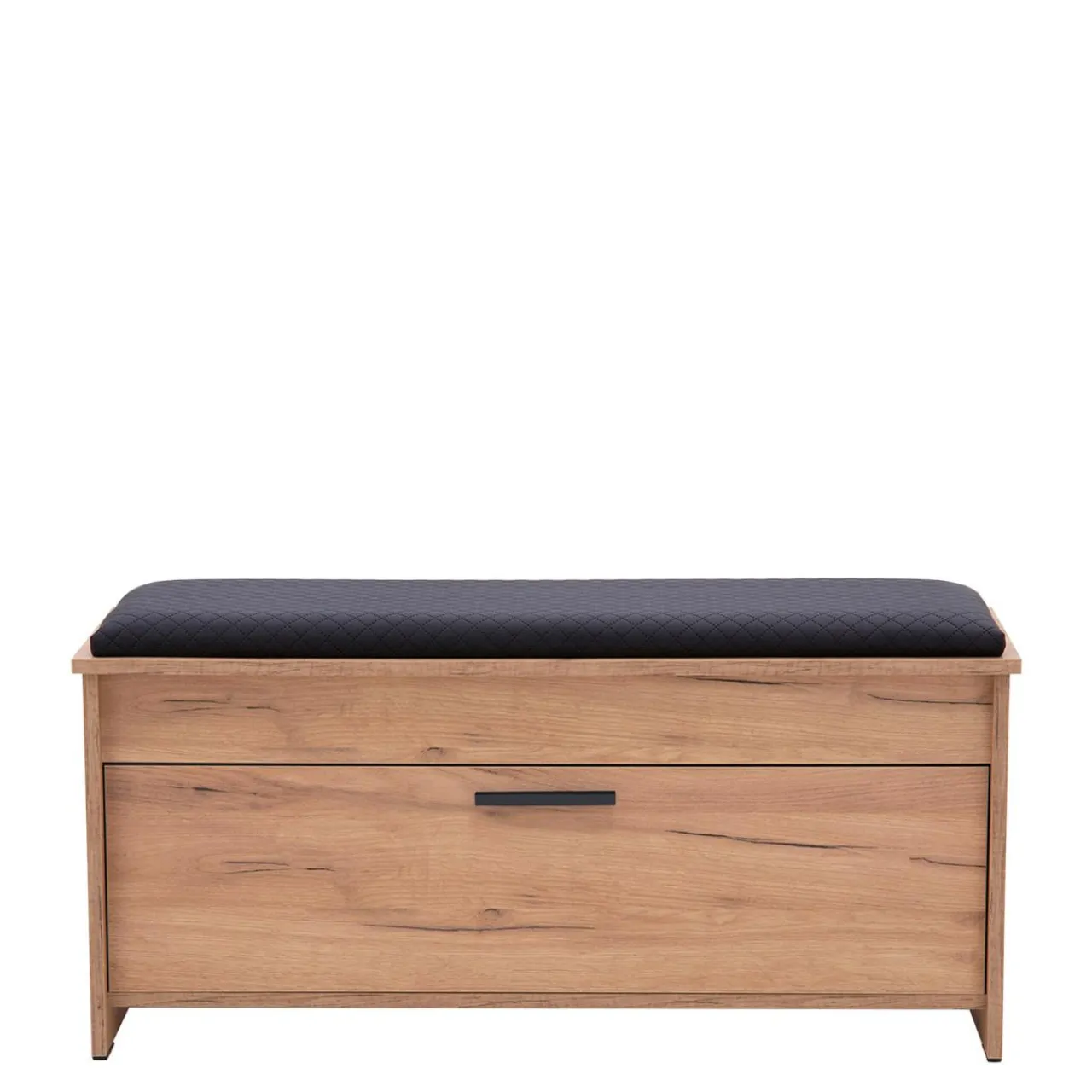 - Tapicerowane siedzisko w ciemnym kolorze dodaje szafce szyku klasycznej elegancji i wpasuje się w wiele rozwiązań aranżacyjnych przedpokoju.