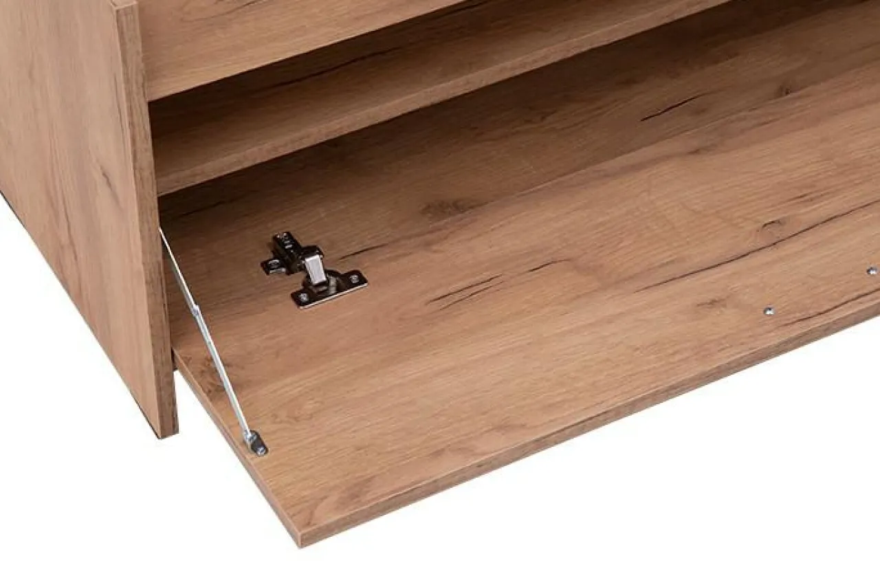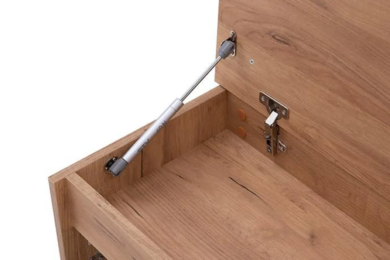 - Dzięki zastosowaniu siłownika gazowego w górnych drzwiczkach, użytkowanie mebla jest wygodne i bezpieczne.