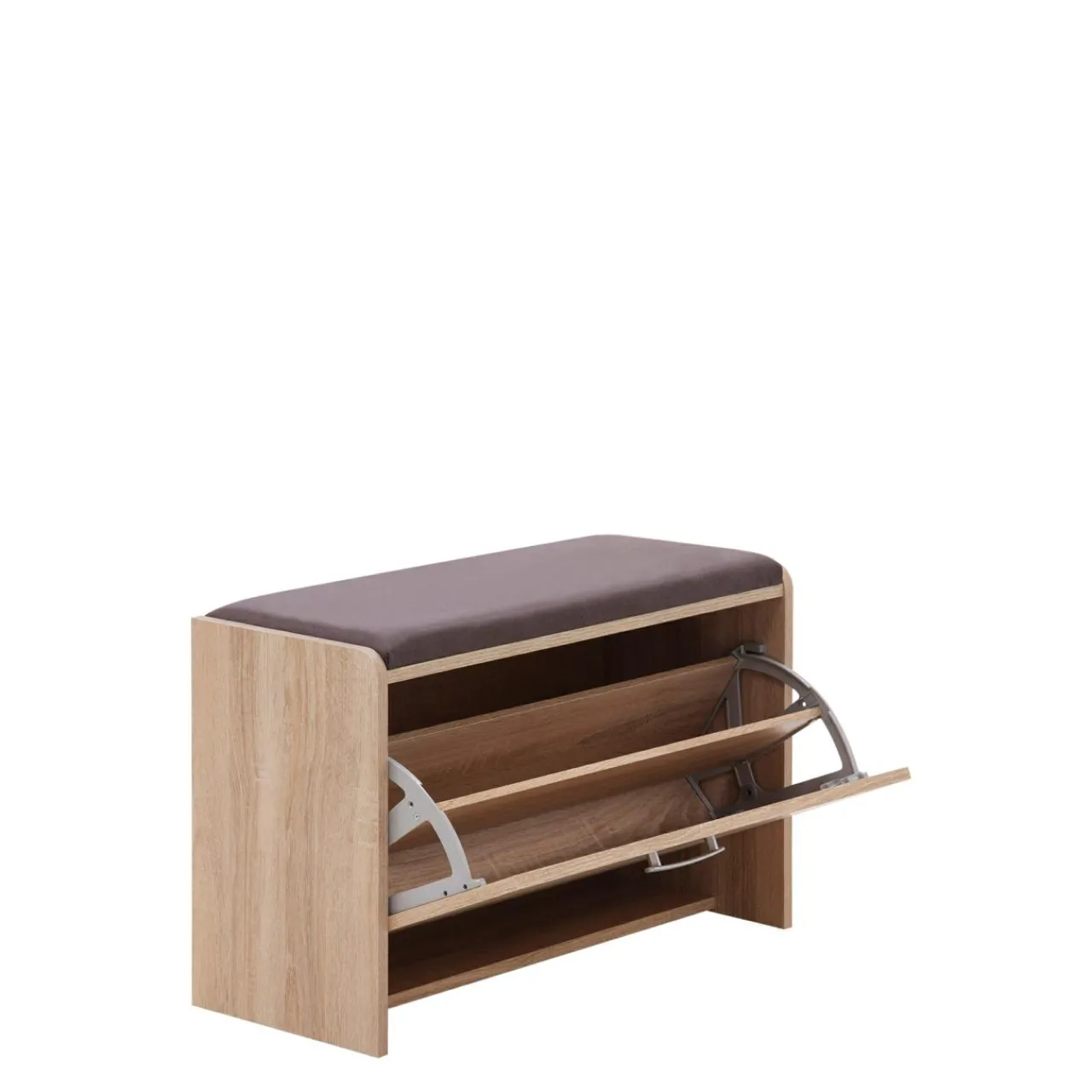 - Blat szafki pokryto brązowym – polerowanym welurem. Tworzy siedzisko, dzięki czemu możesz na nim usiąść, by wygodnie włożyć buty.