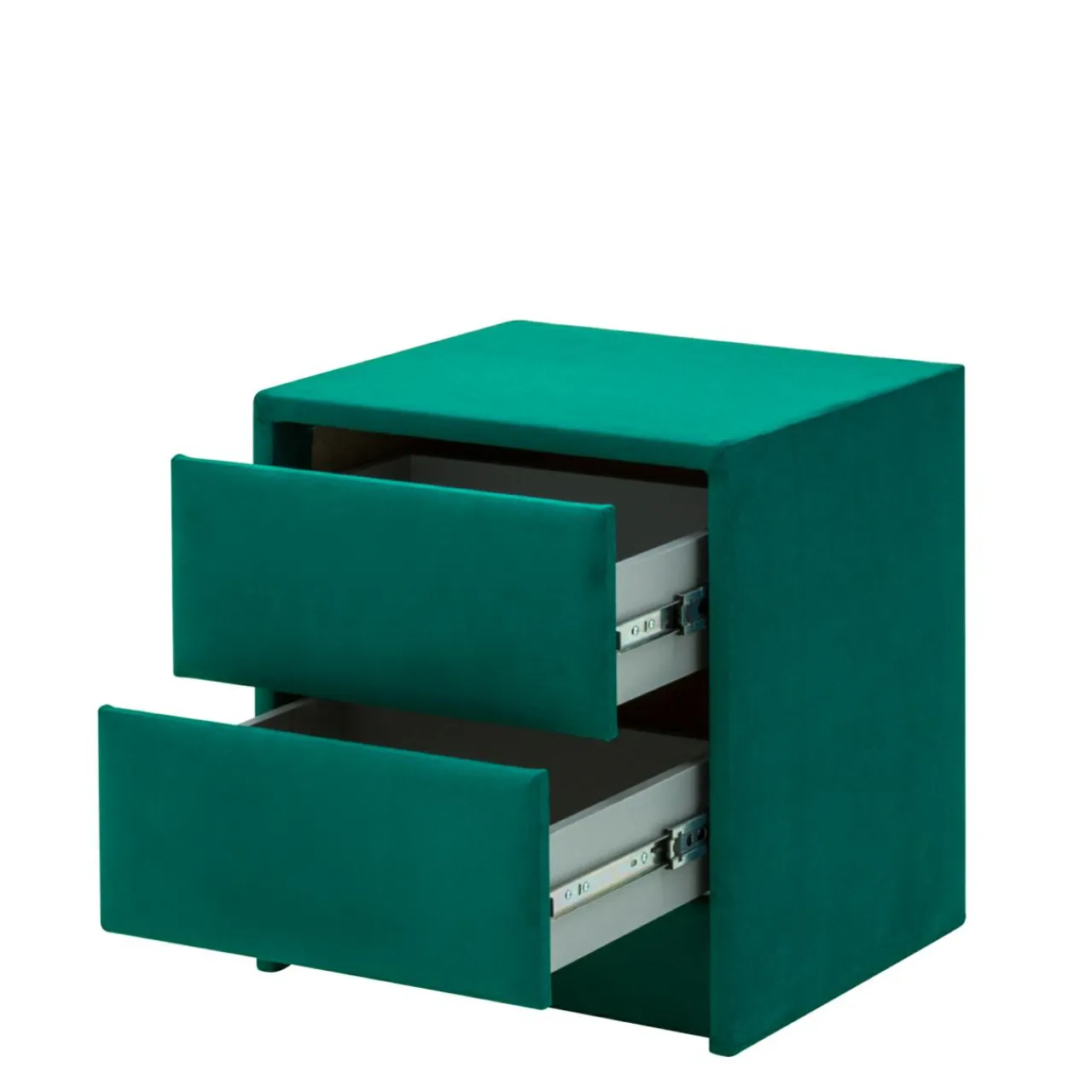 Szafka nocna MANSION wyróżnia się nietypowym wykończeniem – w całości pokryta jest tapicerką.