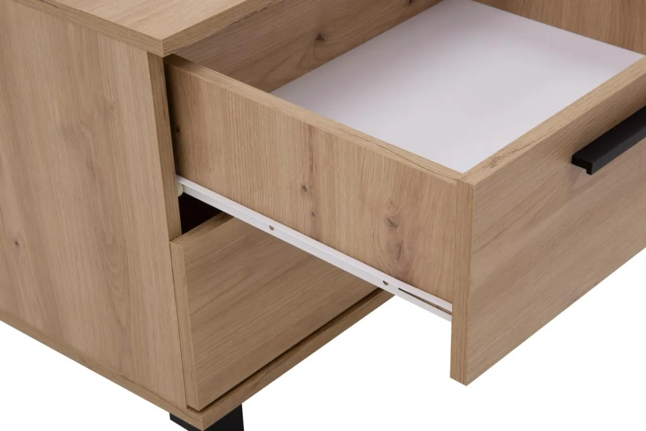 - Nowoczesny design, minimalistyczne uchwyty oraz wykończenie w kolorze naturalnego drewna sprawi, że szafka nocna MALTA uzupełni każde wnętrze w nowoczesnym stylu.