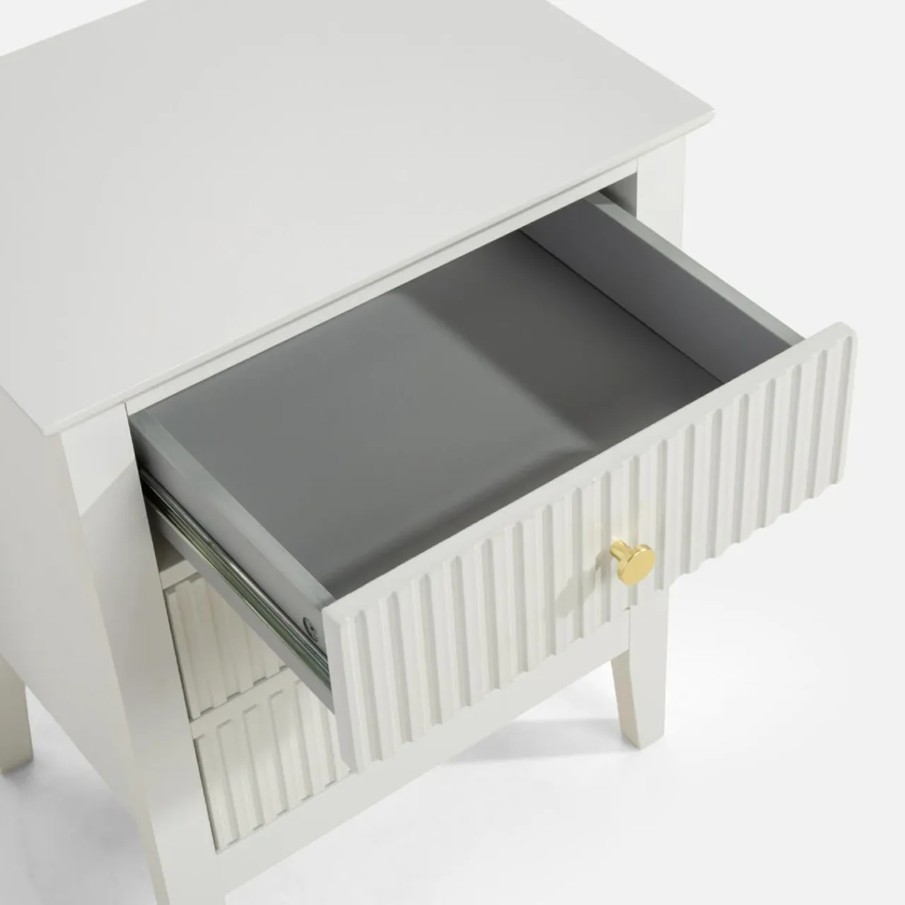 Fronty szuflad posiadają wyraźne w dotyku ryflowanie. Wyraźne wgłębienia dodadzą nowoczesnego akcentu do pomieszczenia.