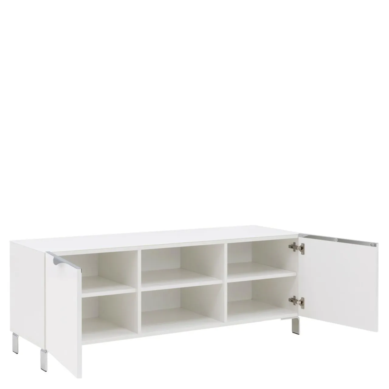 Chromowane uchwyty podkreślają nowoczesny charakter mebla.