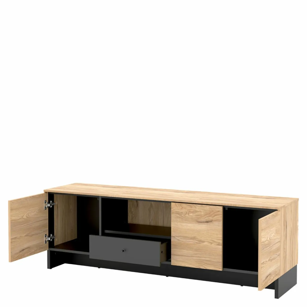 - Na blacie szafki RTV NOMAD możesz postawić telewizor lub rozstawić na nim zestaw nagłaśniający.