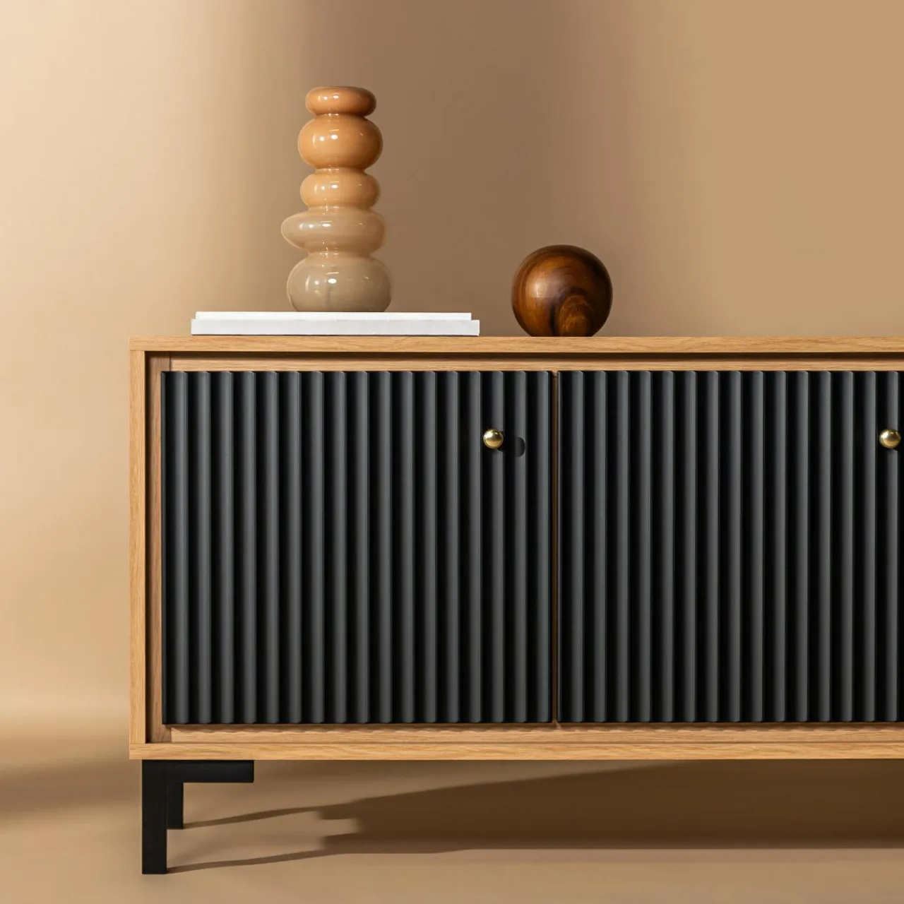 Fronty do komody wysokiej PARII zachwycają ryflowaną powierzchnią i matowym wykończeniem. Sprawią, że pomieszczenie nabiera minimalistycznego charakteru z nutką klimatu japandi.