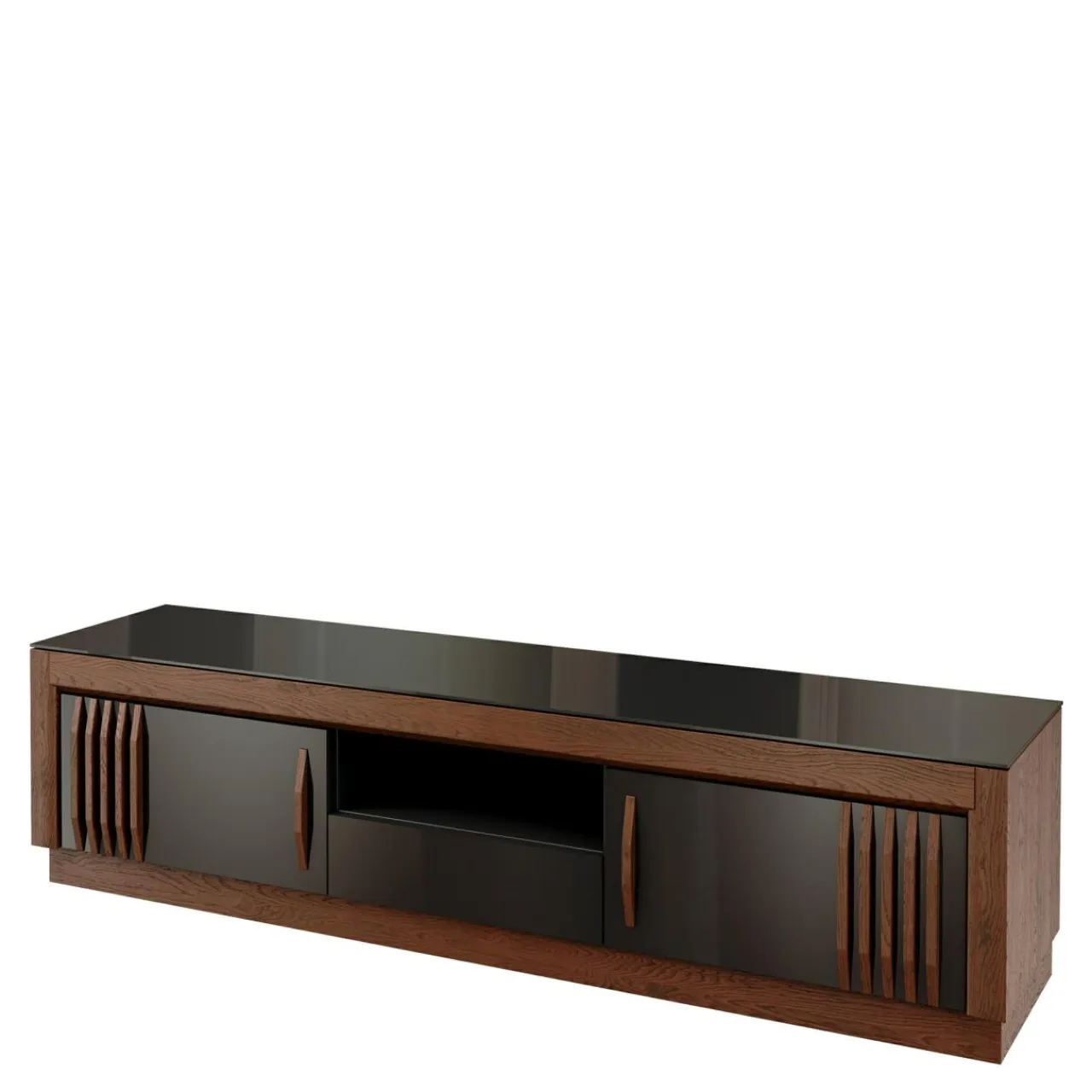 - Szafka RTV kryje 2 wnęki za drzwiami oraz 1 wnękę otwartą na sprzęt.