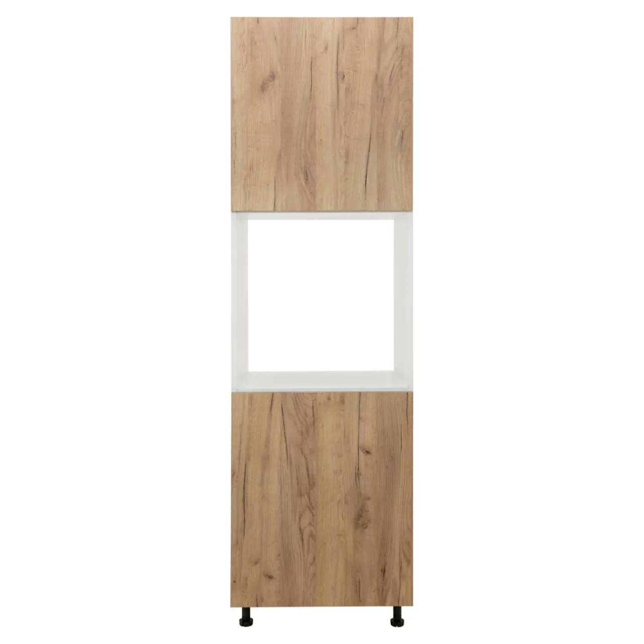 Wysoka na 197 cm szafka z zamykanymi wnękami na na górze i dole mebla świetnie pasuje zarówno do kuchni o charakterze liniowym oraz kątowym.