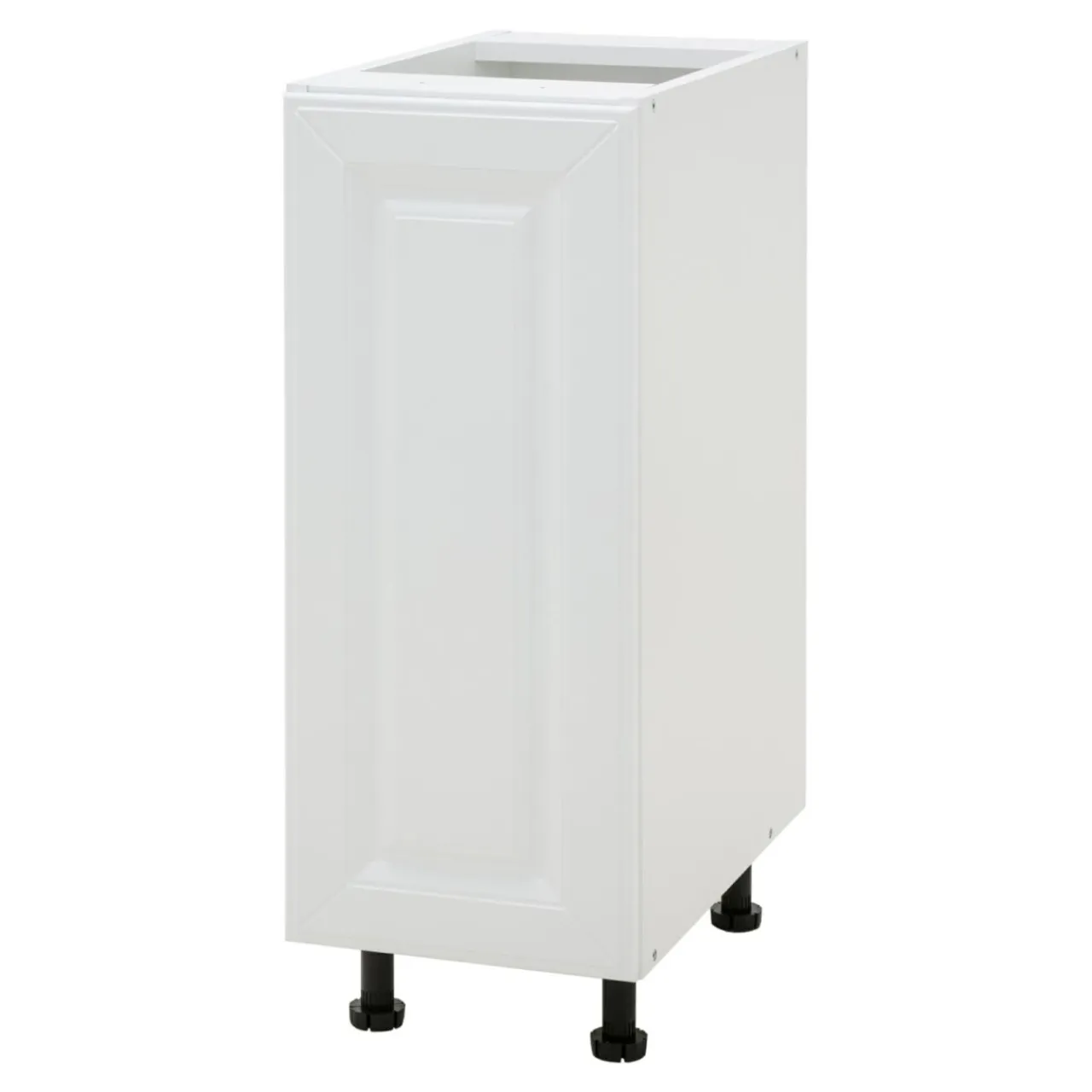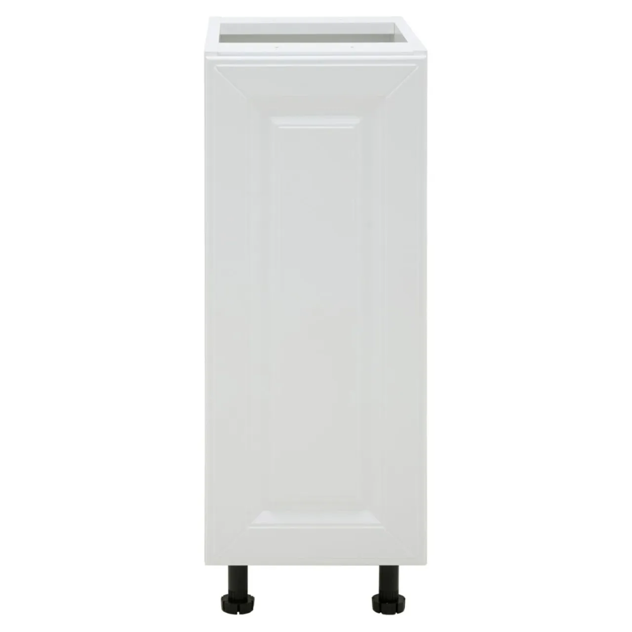 Front zamykanej szafki BASIC PLUS BP/D30 został wykończony w matowym odcieniu bieli. Uwagę zwraca charakterystyczna ramka, wewnątrz której umieszczone zostało zdobienie.