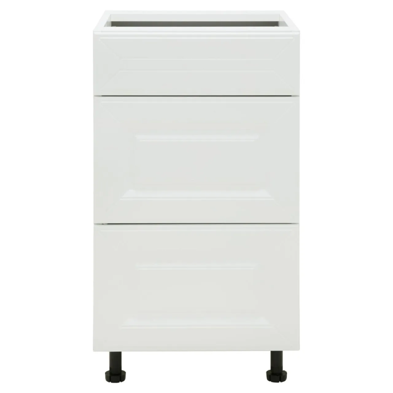 Wysoka na 82 cm szafka o szerokości 45 cm pozwala wygospodarować miejsce na niewielkie naczynia oraz pomoce kuchenne, które dobrze mieć w zasięgu ręki podczas przyrządzania posiłku. Szafka posiada 3 szuflady. Najniższa z nich znajduje się bezpośrednio pod blatem, a dwie pozostałe posiadają standardowa wielkość.