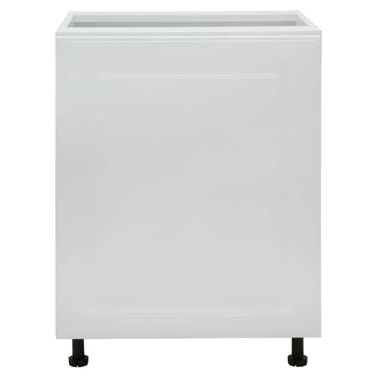 Front zamykanej szafki BASIC PLUS BP/D60 został wykończony w matowym odcieniu bieli. Uwagę zwraca charakterystyczna ramka, wewnątrz której umieszczone zostało zdobienie.