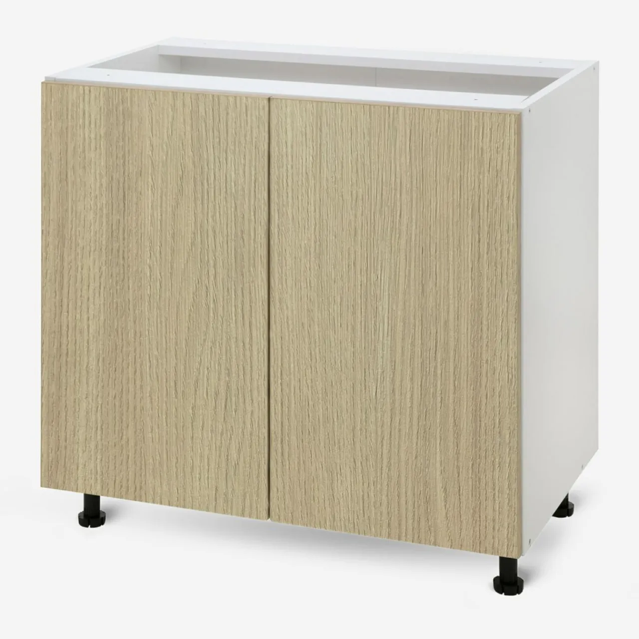 - Dodatkowe możliwości dopasowania szafek stwarzają regulowane nóżki w szafkach dolnych oraz zawieszki ułatwiające poziomowanie przy szafkach górnych.