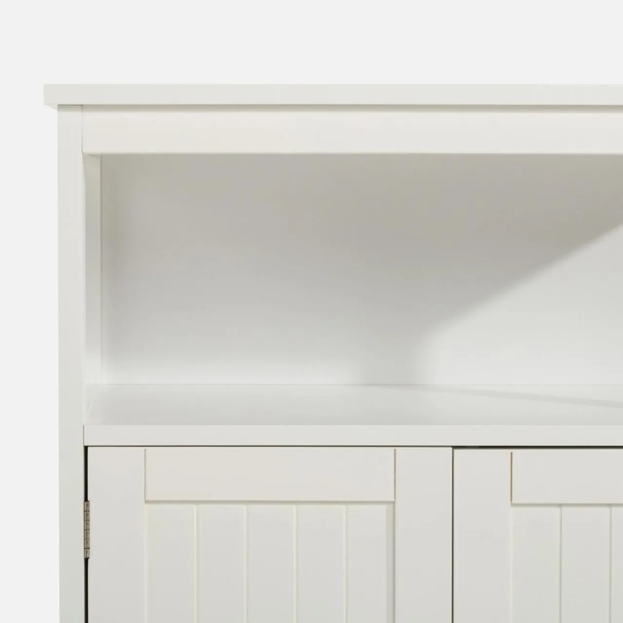 Szafka łazienkowa PARLA świetnie uzupełni małą, prowansalską łazienkę. Białe wykończenie i fronty w formie ramki z wypełnieniem z desek nadadzą swojskiego klimatu.