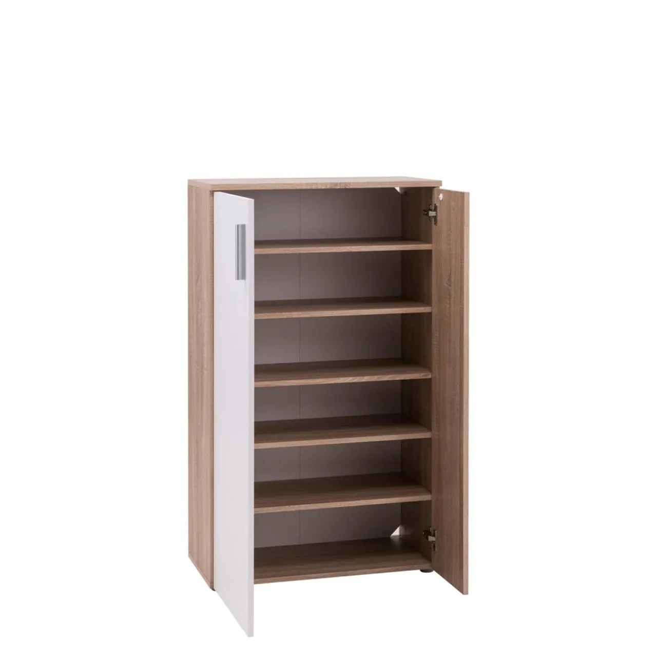 Szafka ma wystarczającą pojemność dla całej rodziny. Kolorystyka szafki to dąb sonoma i biel, którą z łatwością dopasujemy ją do pozostałych mebli w mieszkaniu.