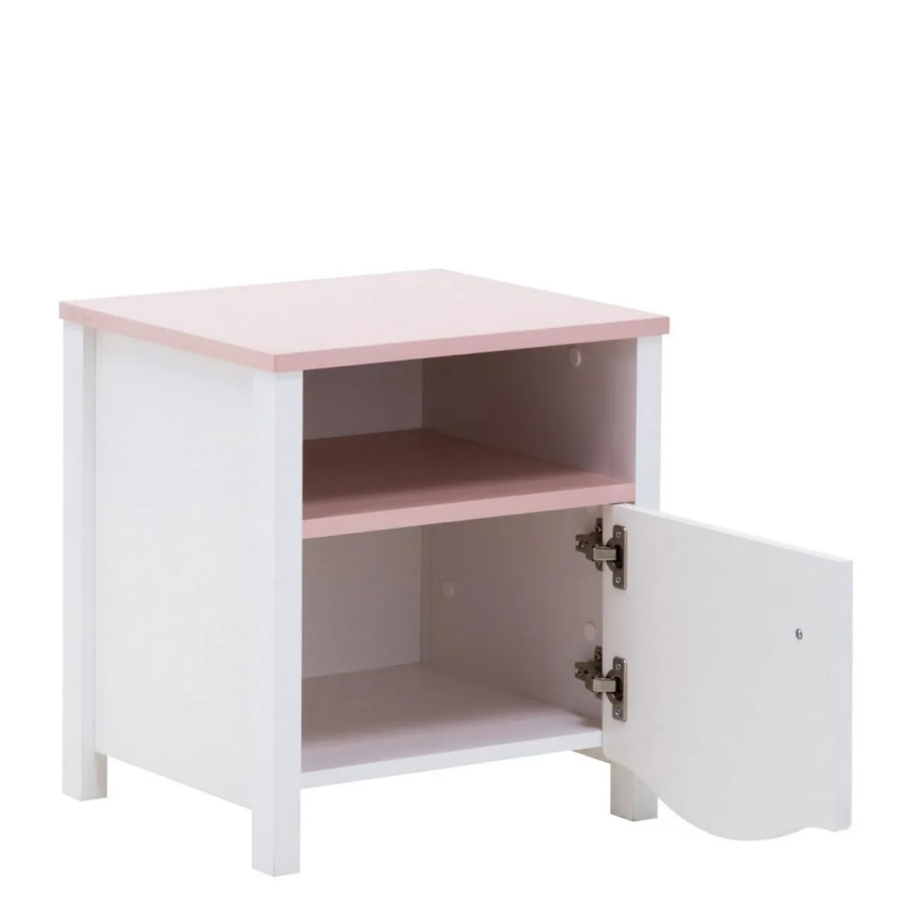 Szafka nocna posiada wnękę i przestrzeń do wykorzystania w środku.