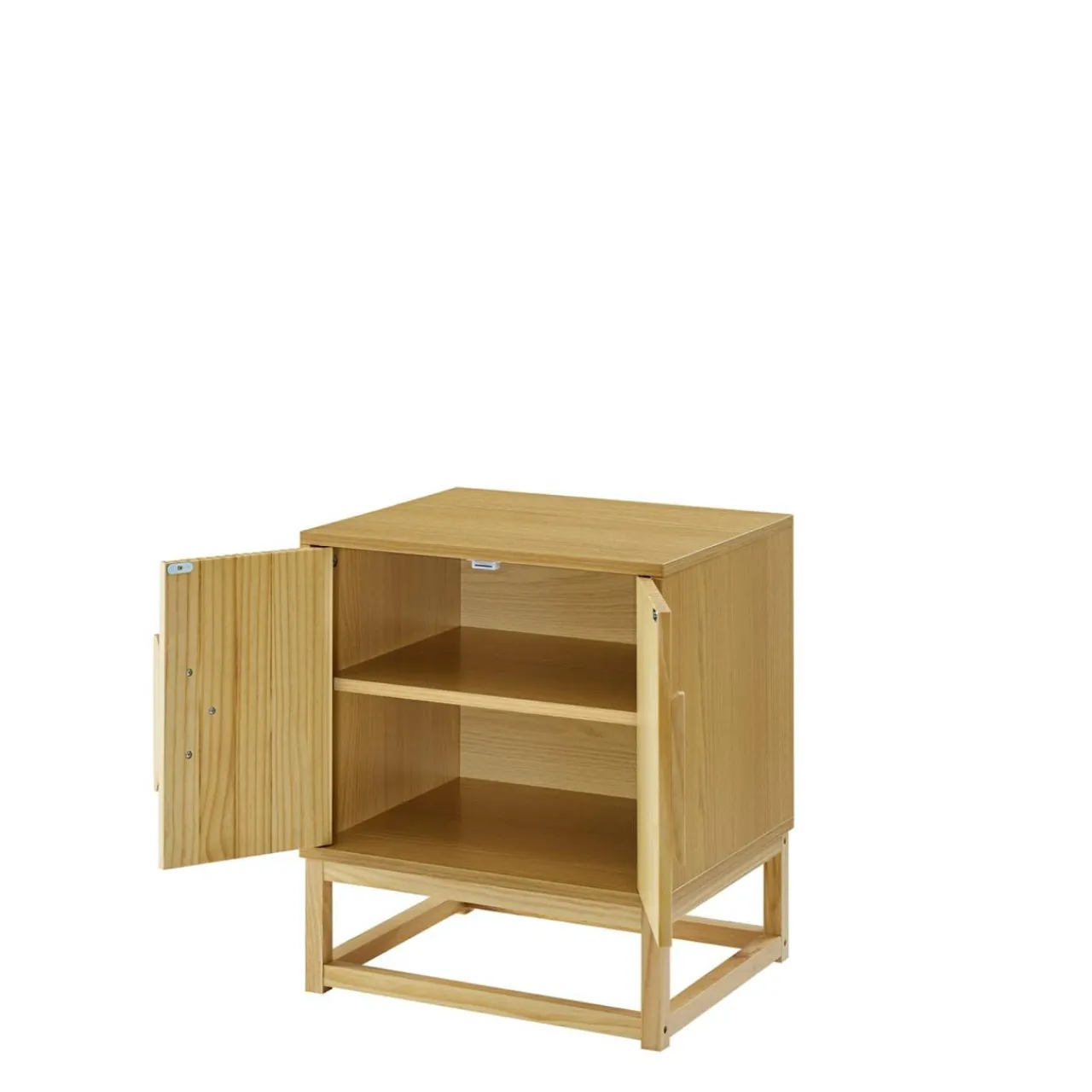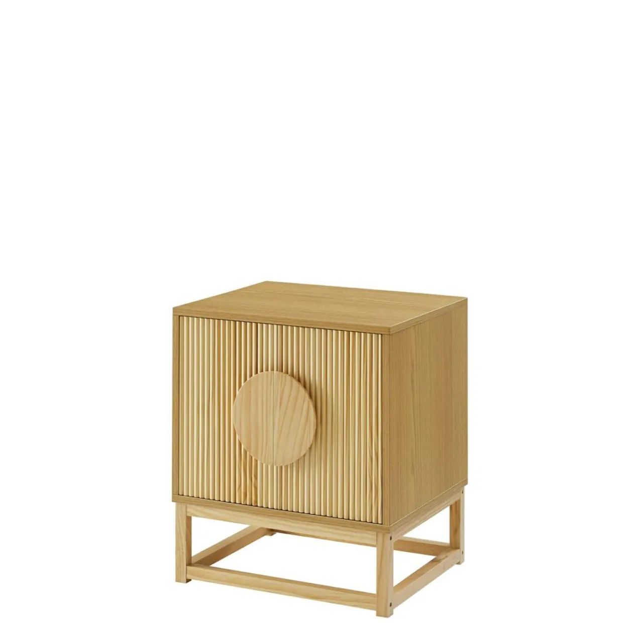 Szafka nocna TIRON wykończony jest okleiną przypominającą jasne drewno.