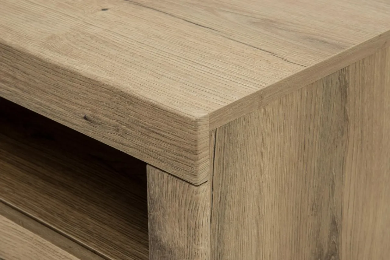 - Korpus wykończony laminatem w kolorze dębu przybrzeżnego evoke w chłodniejszym odcieniu złotego drewna.