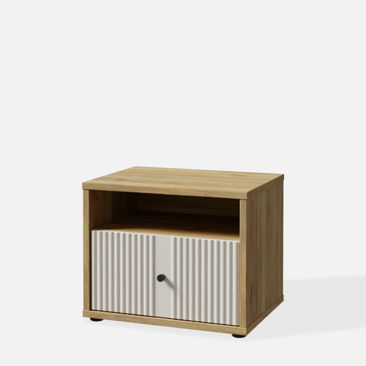 Szafka nocna RANKIN z szufladą pomieści wszystko, co chcesz mieć w pobliżu łóżka. Opaska na oczy, lekarstwa i inne rzeczy będą ukryte przed kurzem, a Ty zwiększysz swoją higienę snu.