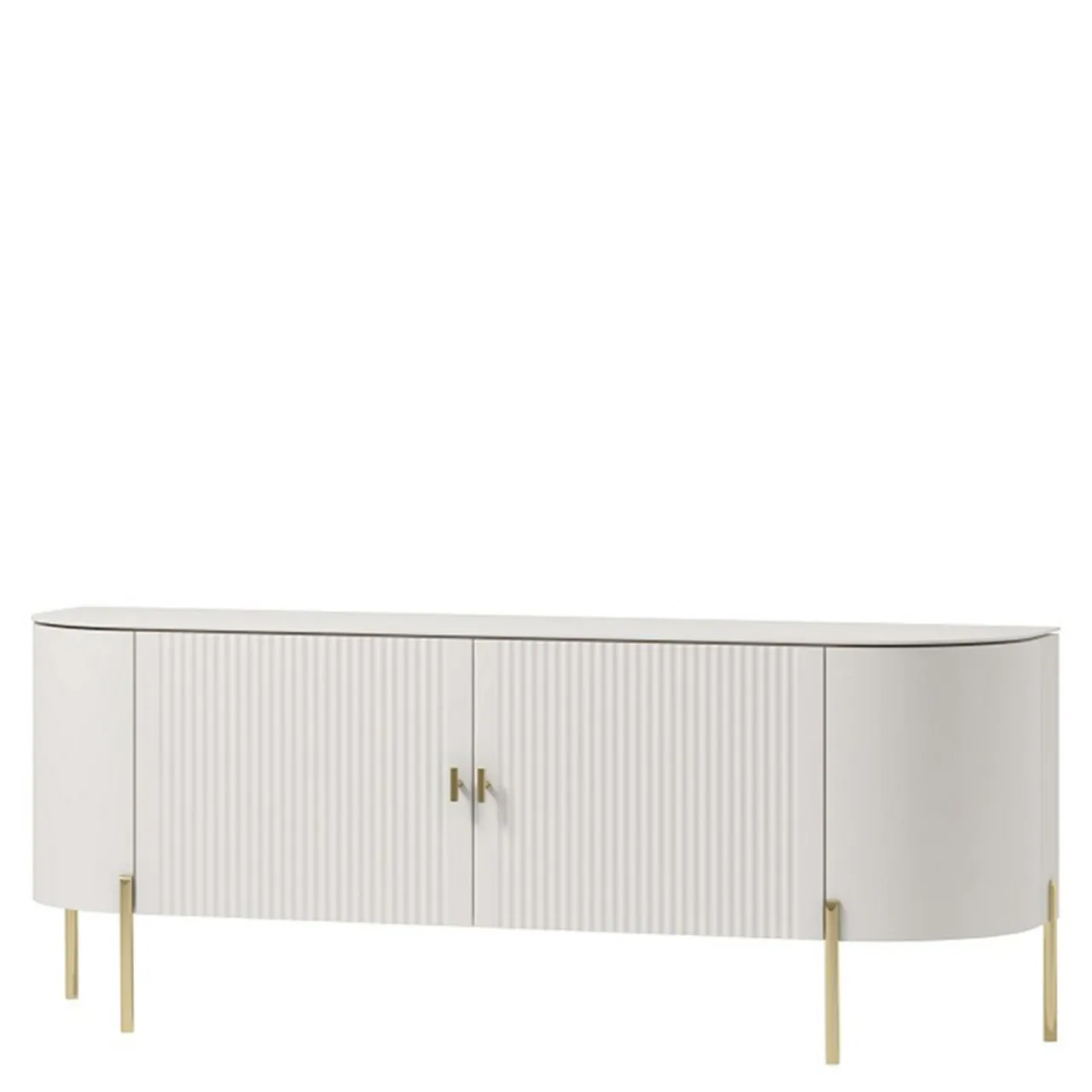 Złote uchwyty i nóżki sprawiają, że meble nabierają charakteru glamour w nowej odsłonie. Proste kształty wykończeń cieszą oko delikatnie odbijanym światłem.