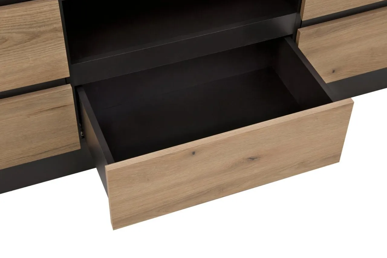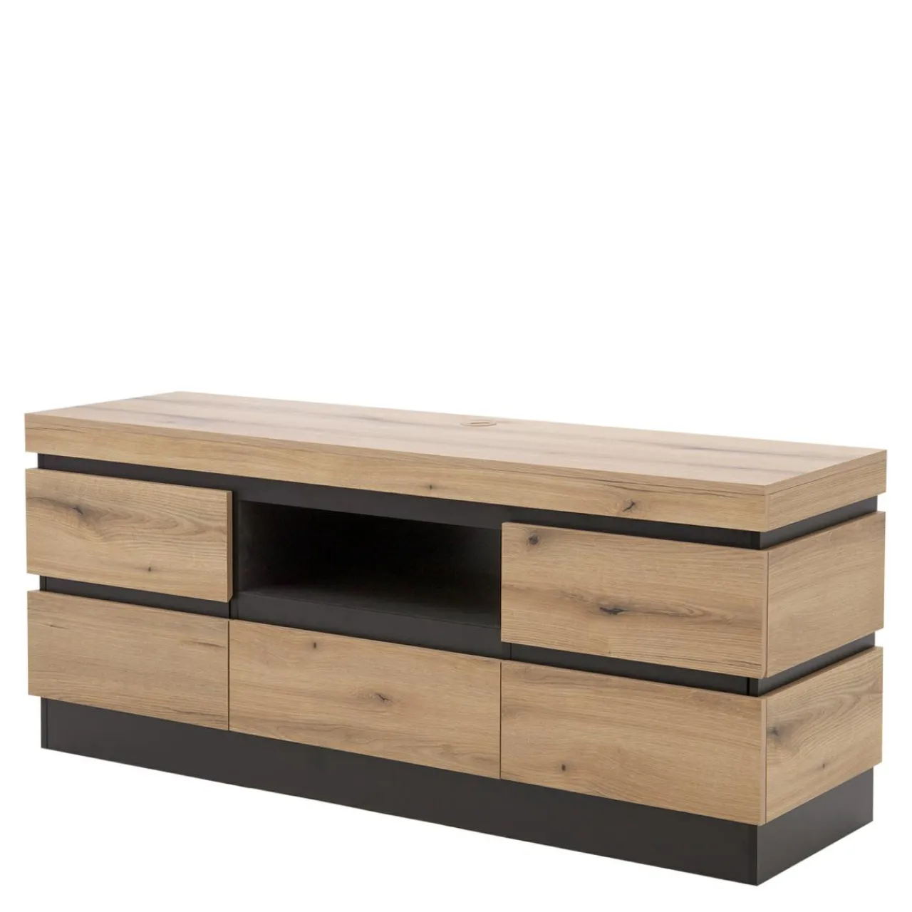 Szukasz masywnej szafki pod telewizor z wnęką na sprzęt? Wybierz szafkę CORTE i ciesz się jej nowoczesnym wyglądem.