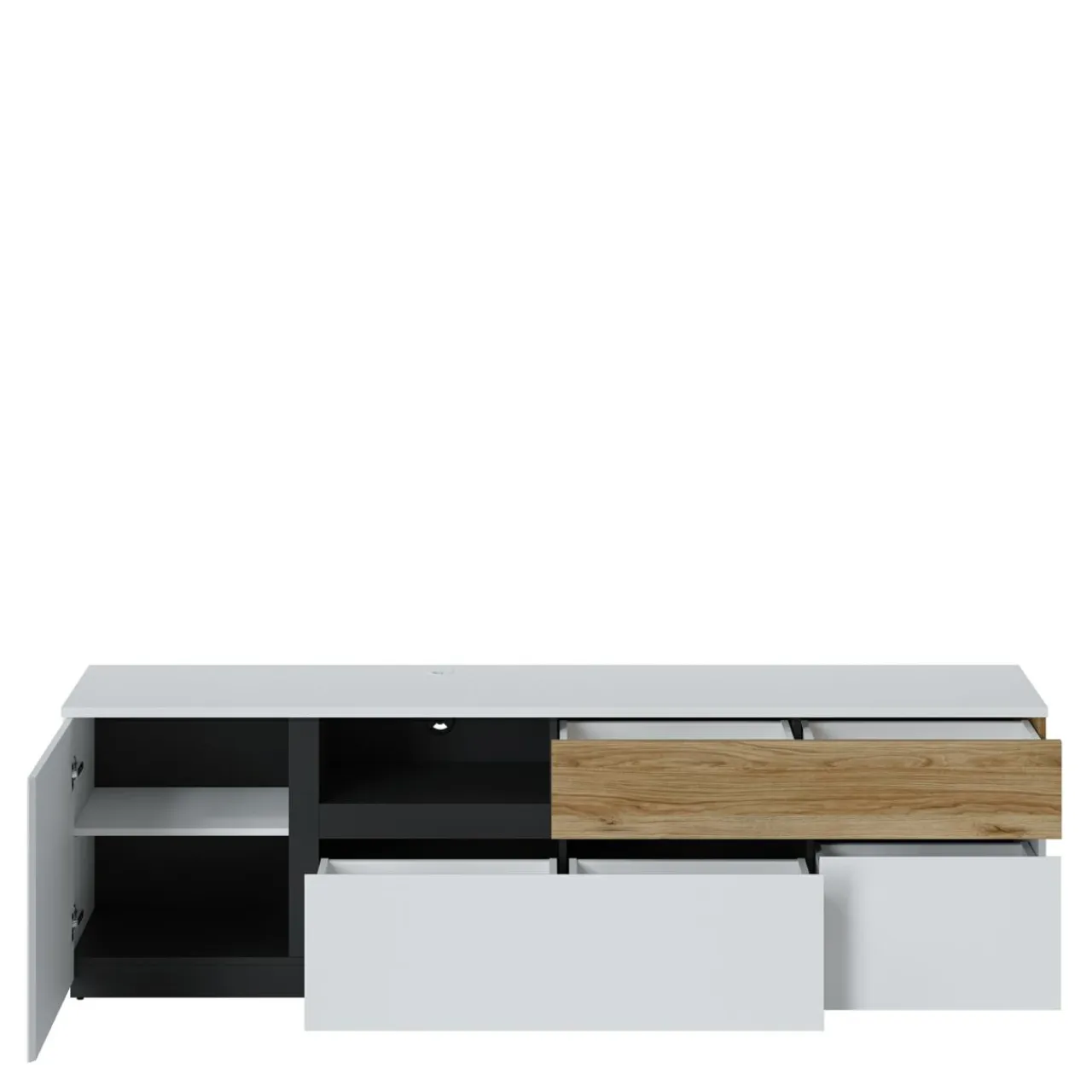 - 2 podwójne i jedna pojedyncza szuflada zapewniają mnóstwo miejsca do przechowywania akcesoriów, płyt i gadżetów.