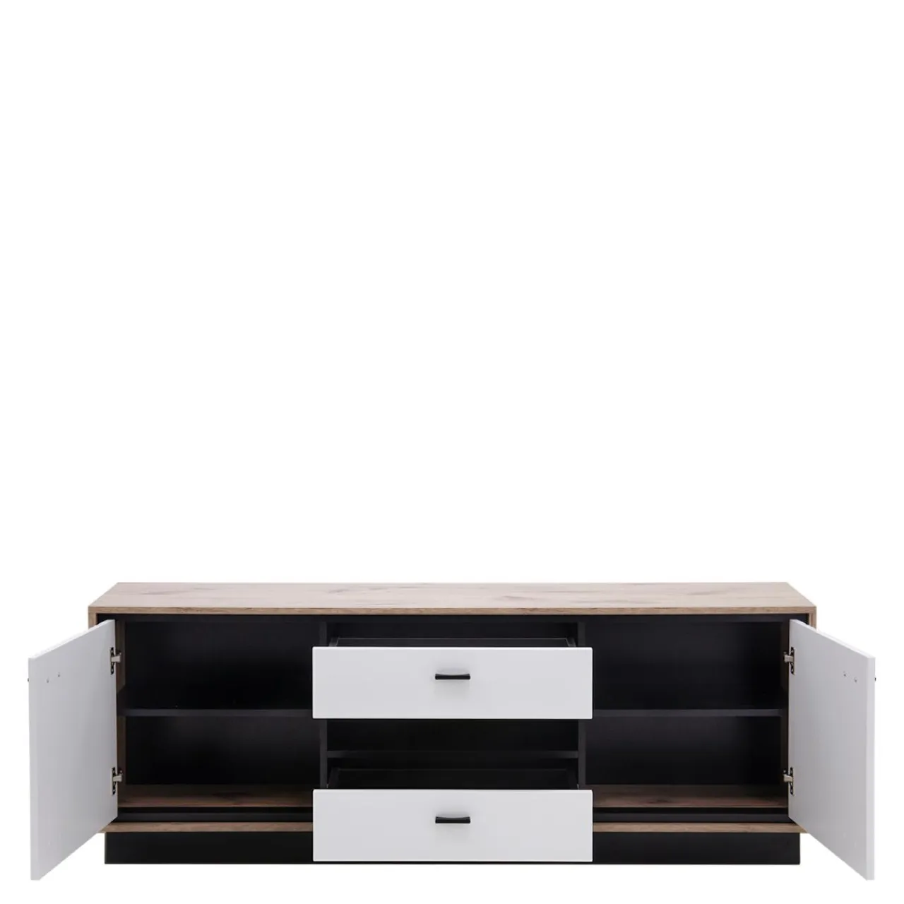 - 4 półki zamknięte: poukładasz na nich gry planszowe lub kolekcję filmów