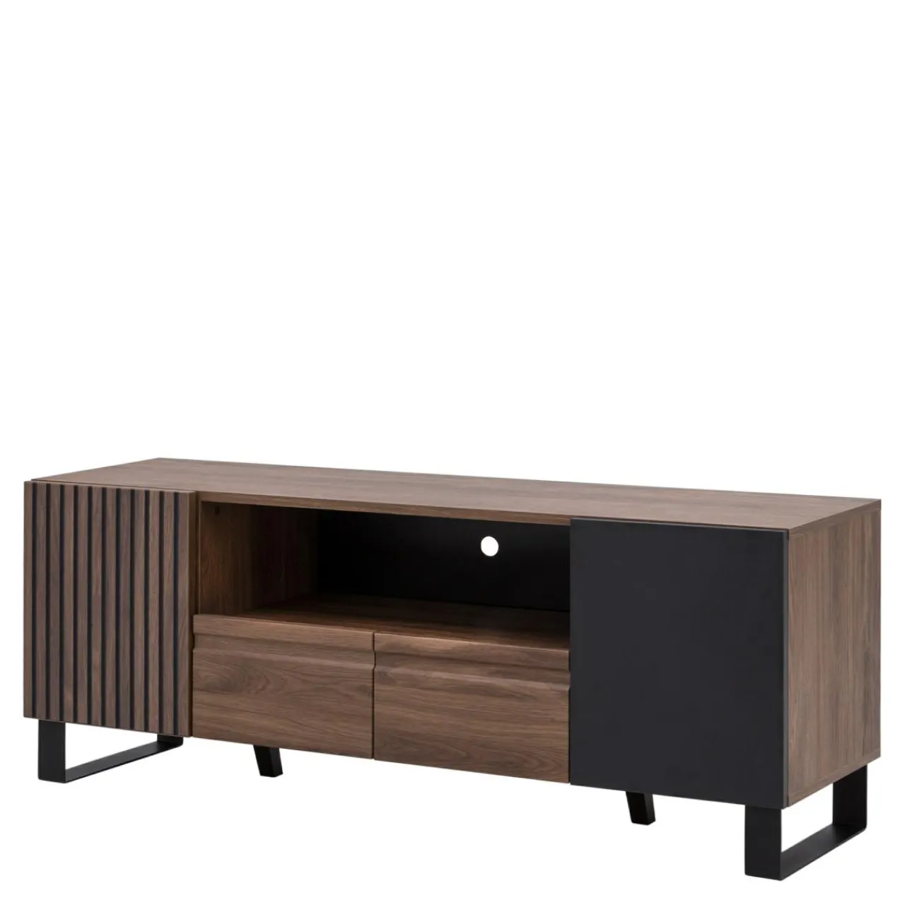 Szafka RTV BOSTON dodaje wnętrzu elegancji. Dzięki zastosowaniu efektu lameli na froncie szafki, kącik wypoczynkowy nabiera nietuzinkowego charakteru.