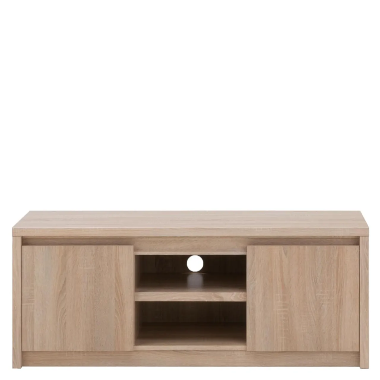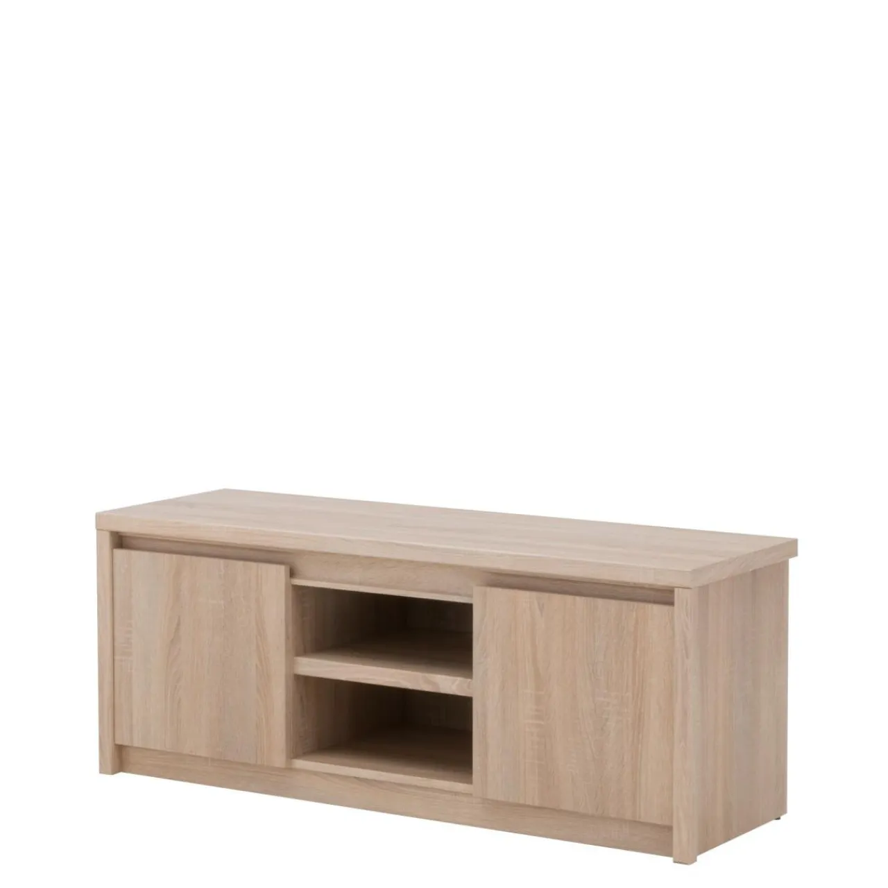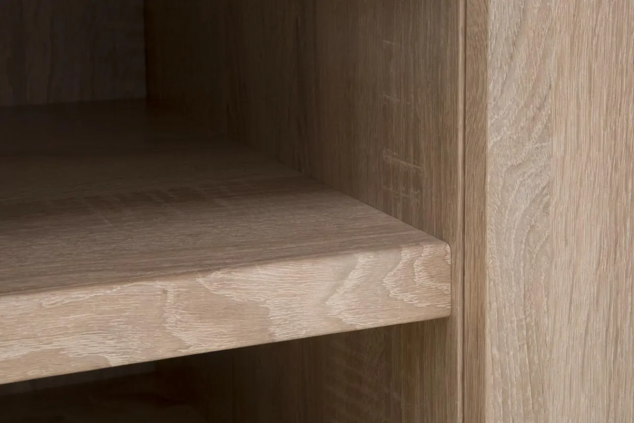 Szafka RTV NORTON charakteryzuje się prostą, minimalistyczną formą, która sprawia, że mebel jest wprost stworzony do nowoczesnych wnętrz. Laminat w jasnym kolorze dębu sonoma, dekorem przypominający drewno, wprowadzi do pomieszczenia przytulny klimat. Brak tradycyjnych uchwytów sprawia, że mebel łatwiej wkomponować w dowolną aranżację.
