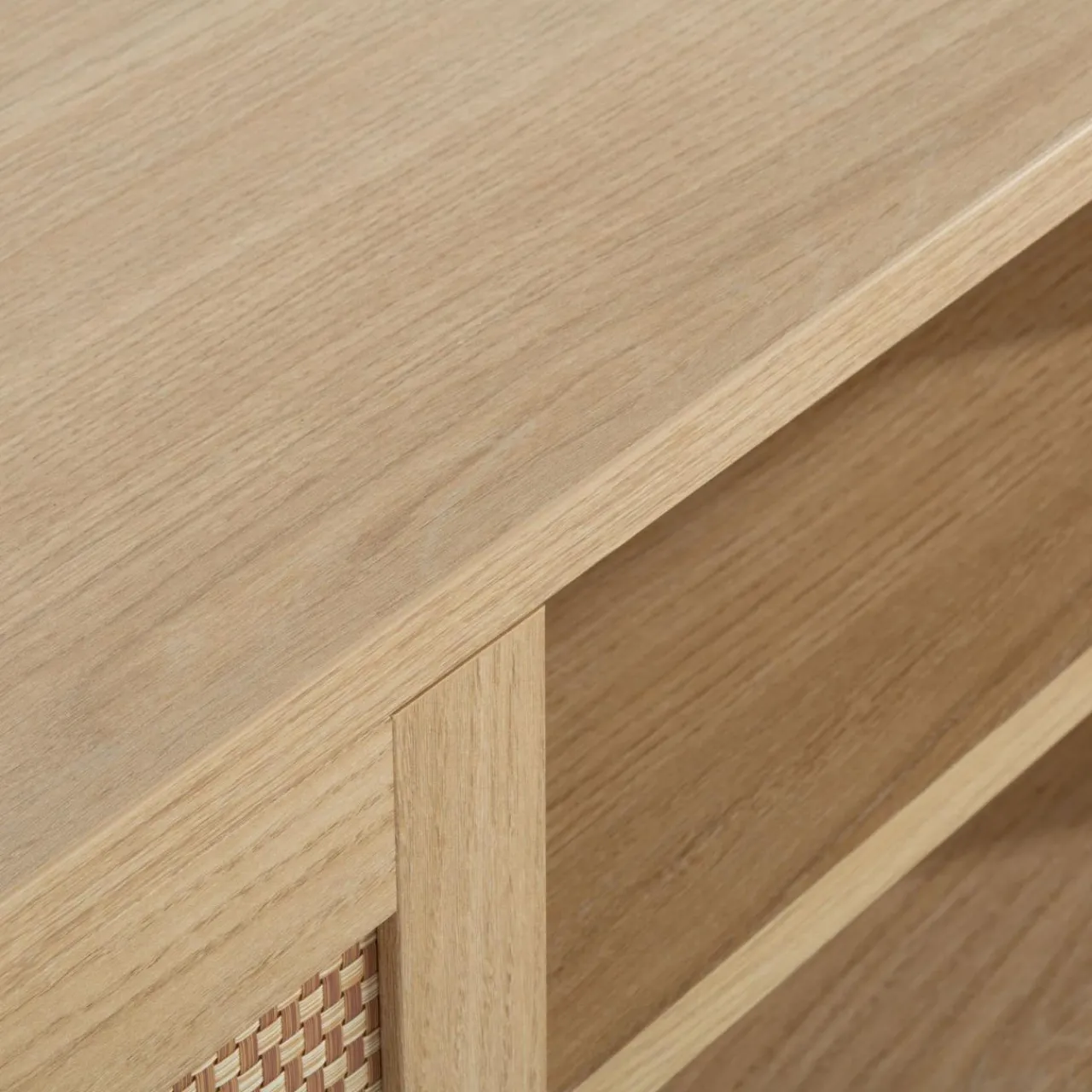 - Kable zasilające pozostaną niewidoczne dzięki otworom w tylnej zabudowie mebla.
