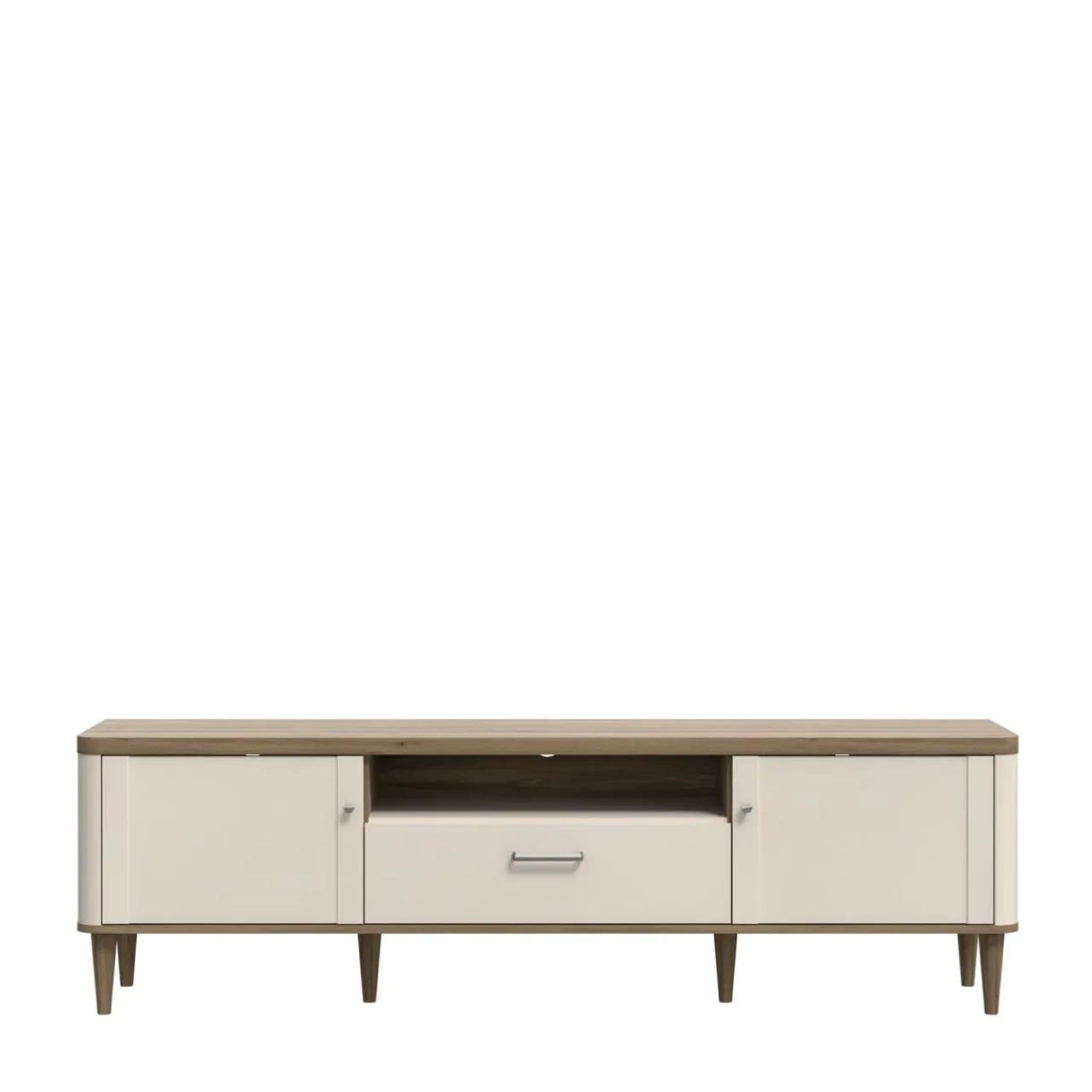 - Ciepły piaskowy beż z elementami dębu valencia tworzą nowoczesną kolekcję, sprzyjającą odpoczynkowi.